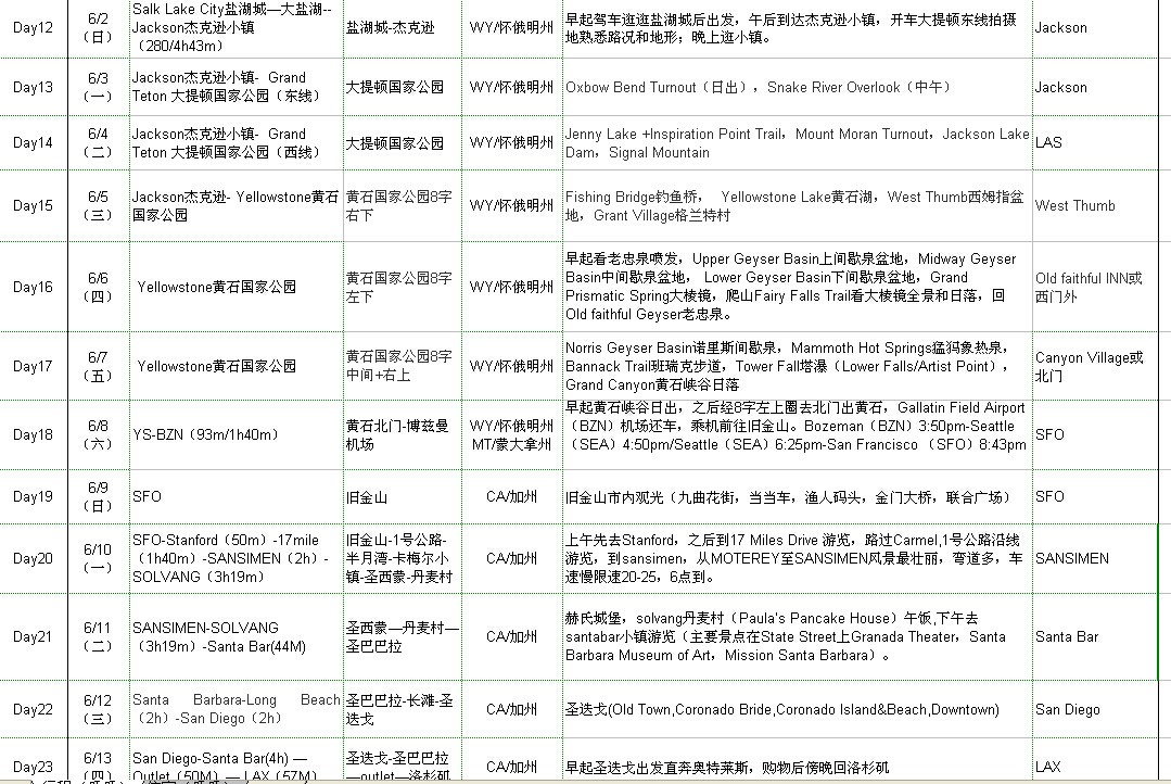 接下来就是找队伍了,我想难得去次美国 ,机票又不便宜,我手头积攒的调休假期又足够多,尽量找时间跨度长的队伍,经过在蚂蜂窝,穷游,携程“结伴同行”板块四处撒网,最终找到一个武汉 姐姐海蓝的队伍,在我之前已经有英文专业八级河南 妹纸微微、湖南 的树夫妇加入,我们一共五人,5月22日洛杉矶 集合,6月14日洛杉矶 解散
