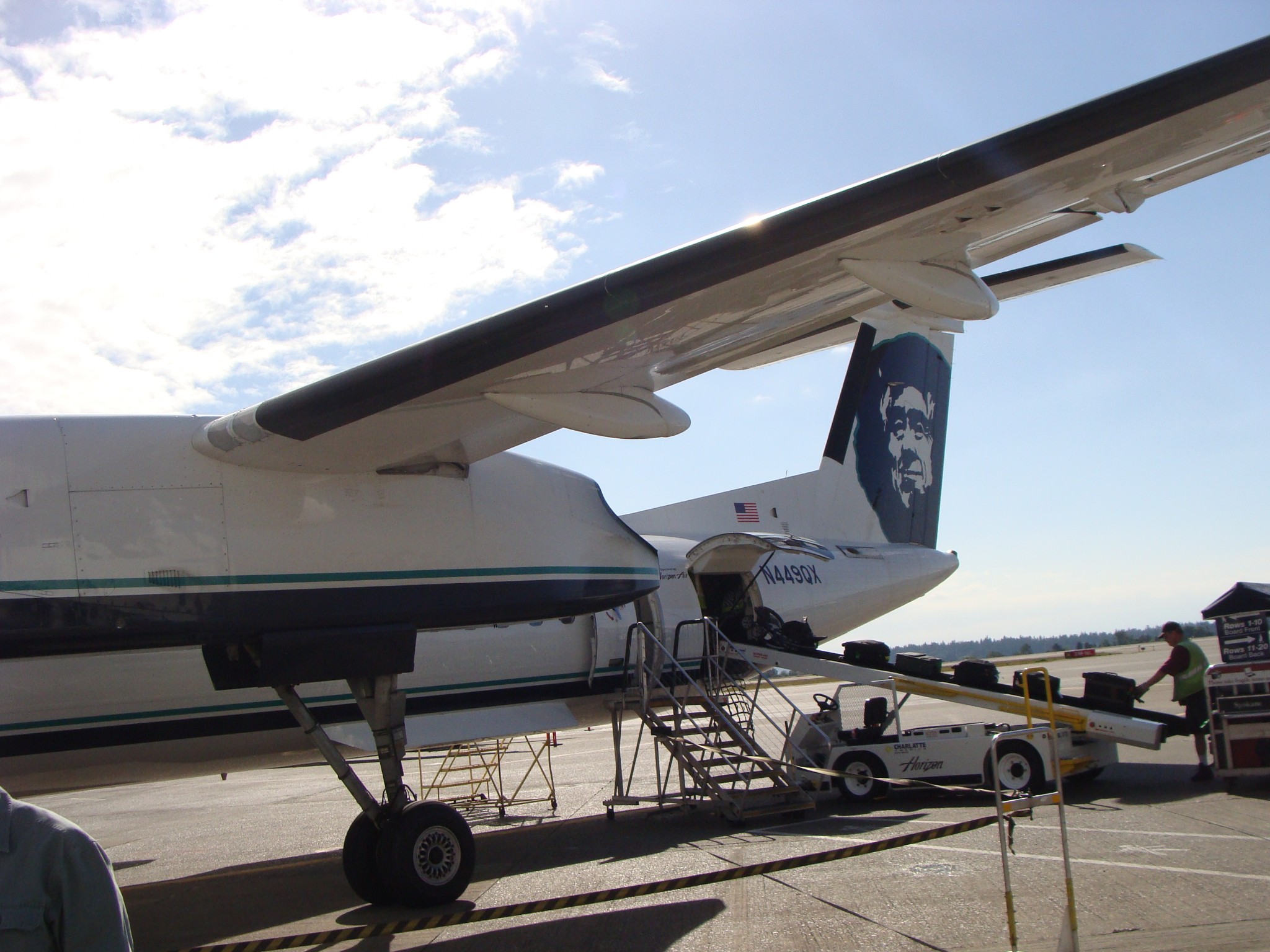 在西雅图 需要再转波音737,下了飞机,特地到机头拍张照留念