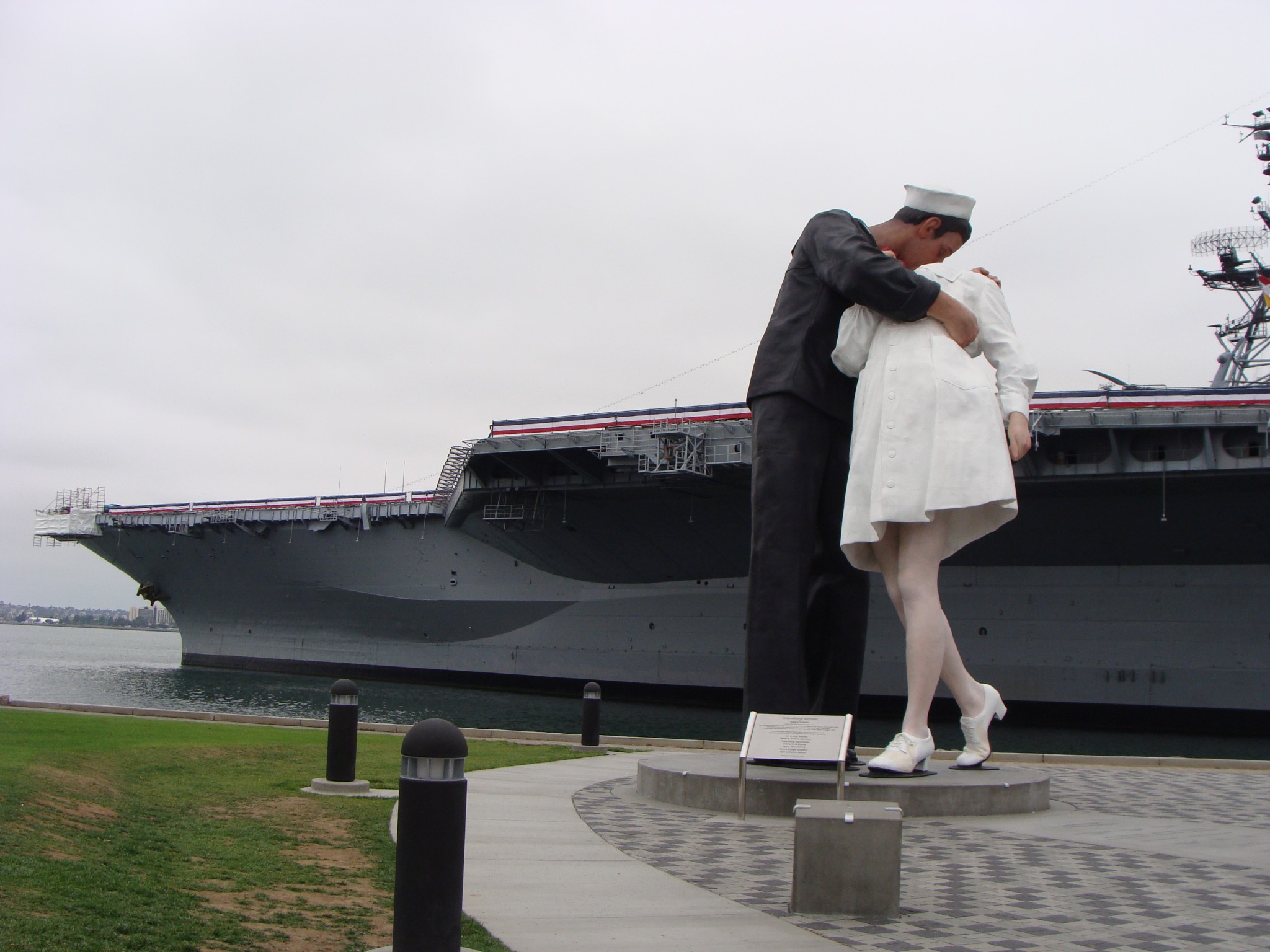 这个雕塑因一张照片而来,被誉为“胜利之吻”。1945年8月14日,纽约 街头和广场上到处都是庆祝二战胜利的人群,人们情绪亢奋,素不相识的人也彼此拥抱和亲吻。在时代广场上,一名水兵和一名白衣护士萍水相逢了,他们也相拥在一起,深情而吻。然而两人拥吻的场景正好被摄影师及时捕捉了下来,这一瞬间成了美国 《生活》杂志的封面照片。