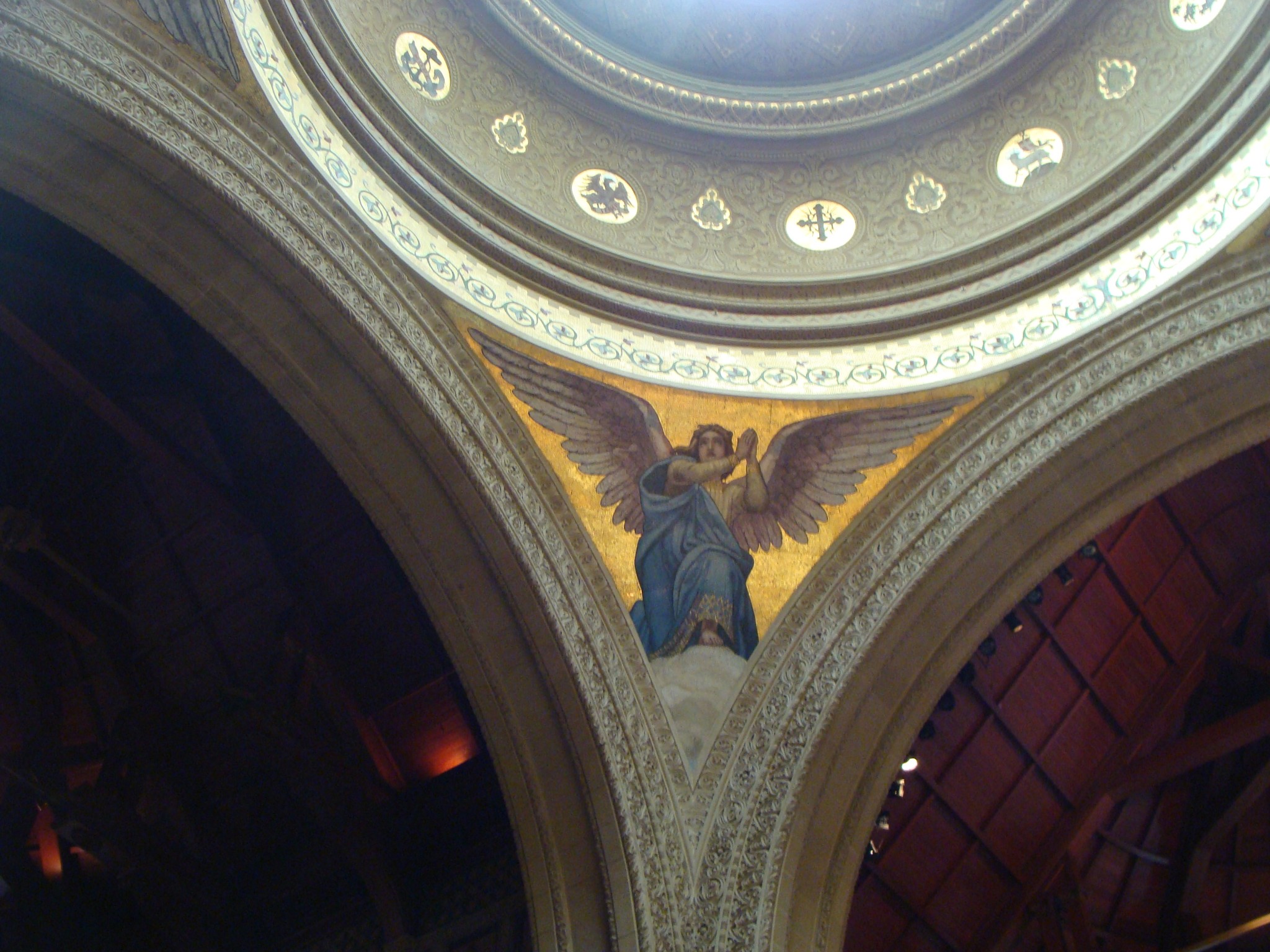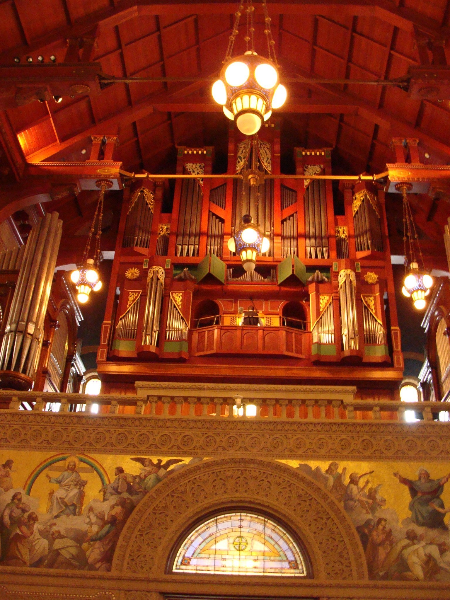 斯坦福大学教堂,虽不大却精美,有琴师几乎不间断演奏管风琴,音乐厚重而神圣