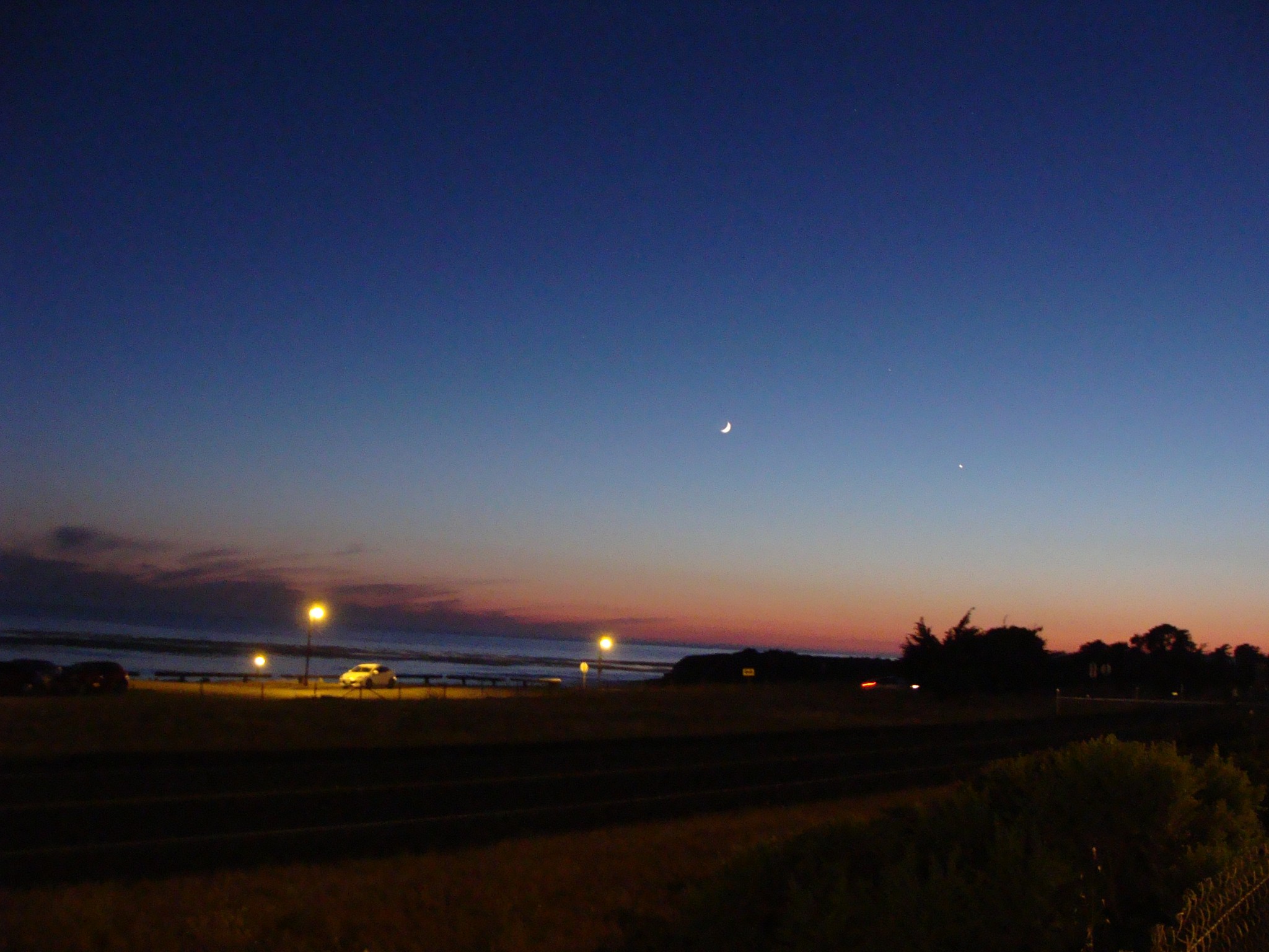 看完落日,候车点等景区车(免费的,唉!差距啊),月亮就登场了