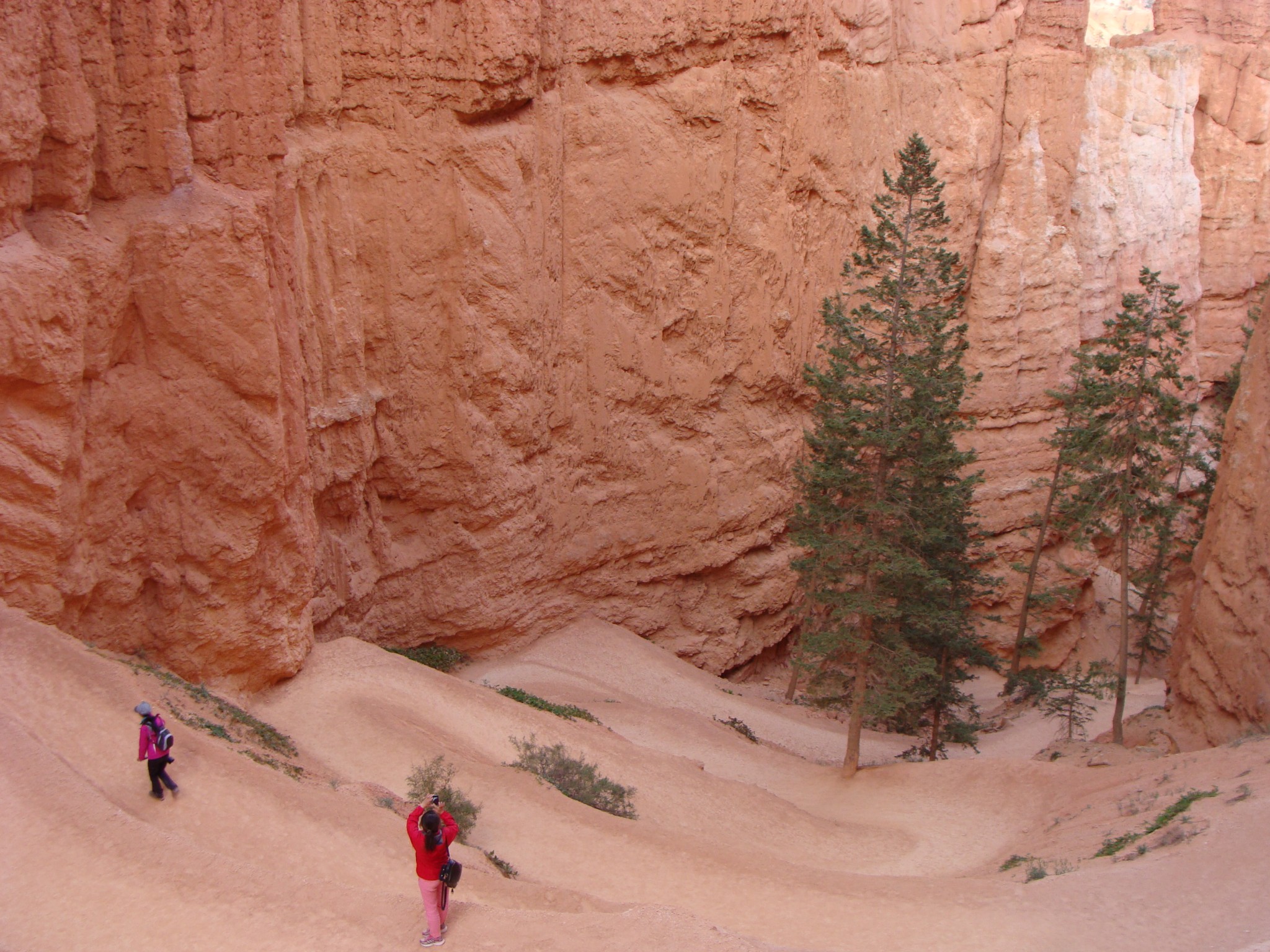 插播一下:之前准备不充分,没有携带干粮和足够的水,大峡谷公园入园时是给了小册子,上面提醒要带很多很多水,但是没有具体写明多少量,我平时喝水就少,于是带了2瓶500毫升的饮用水,还有1个苹果,没背包。树同学背了一个类是剑桥 包的红色公文包上有醒目“上海 ”二字。怀旧而不失时尚