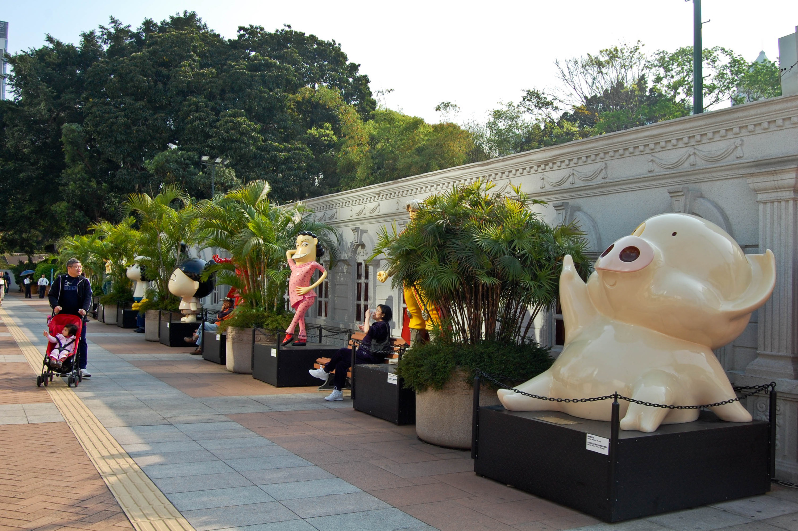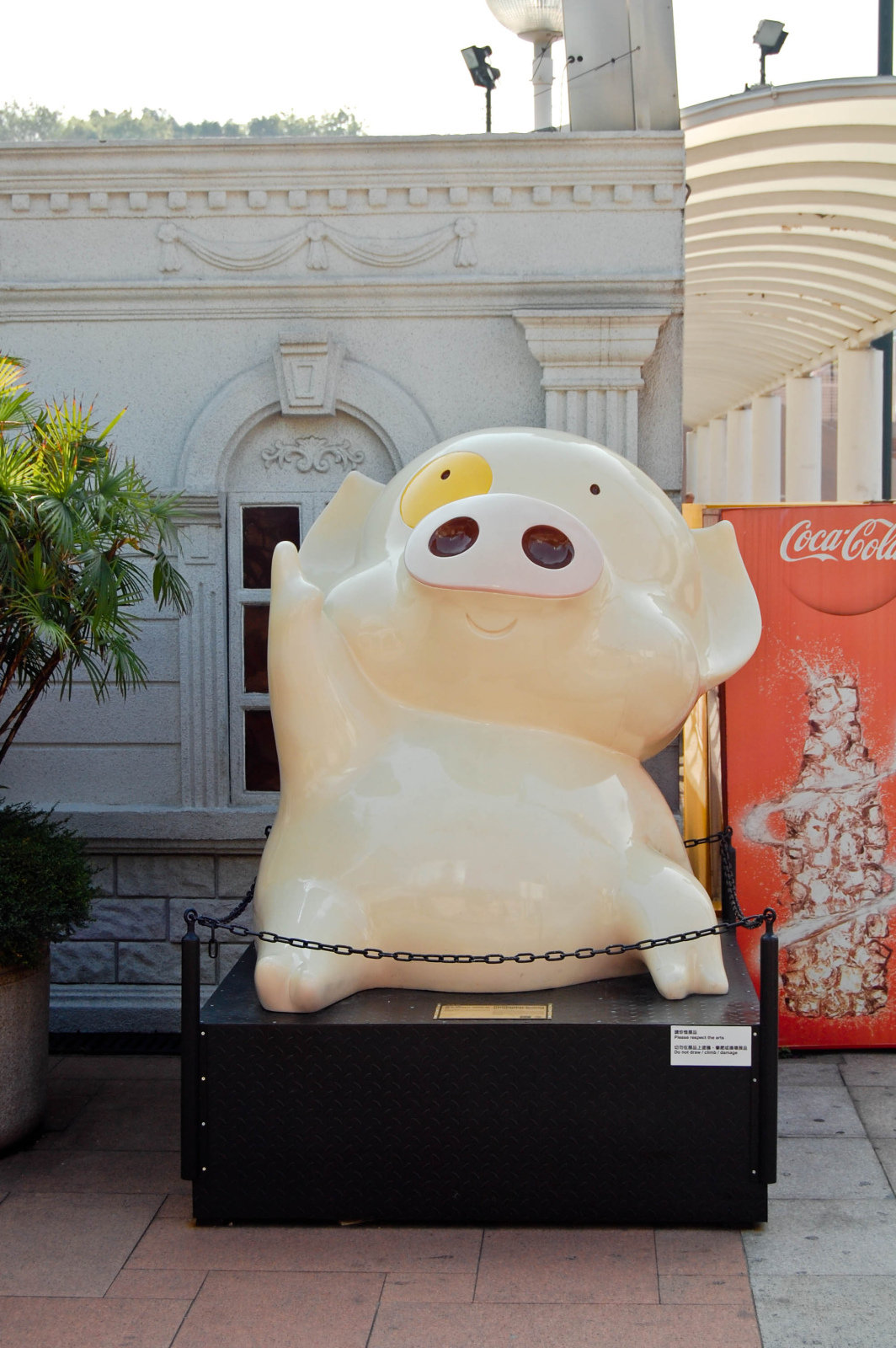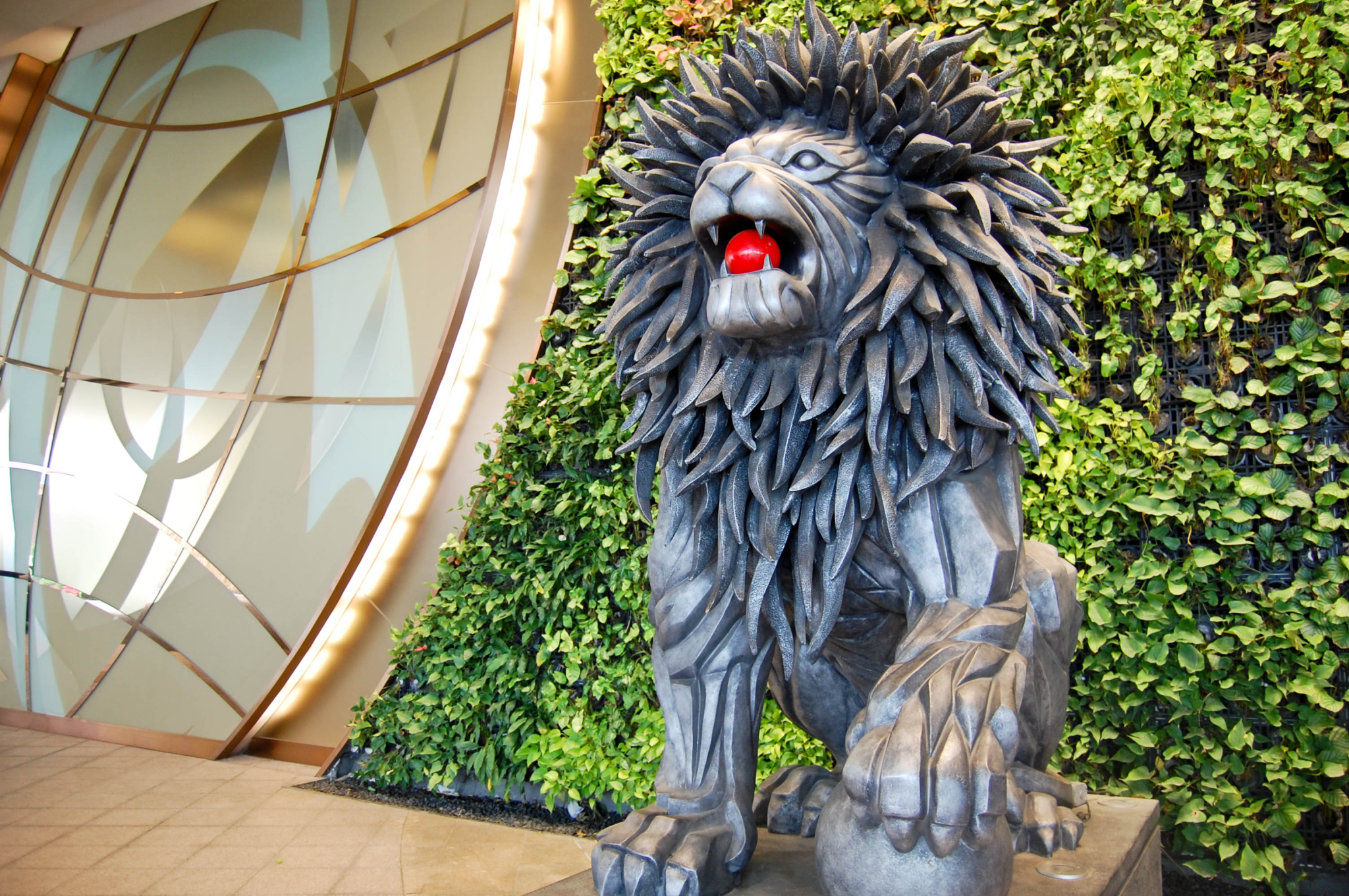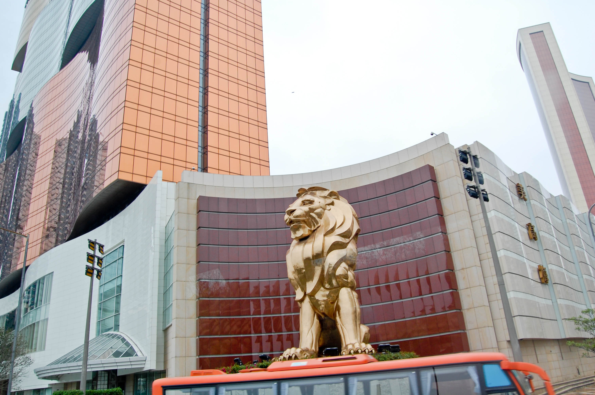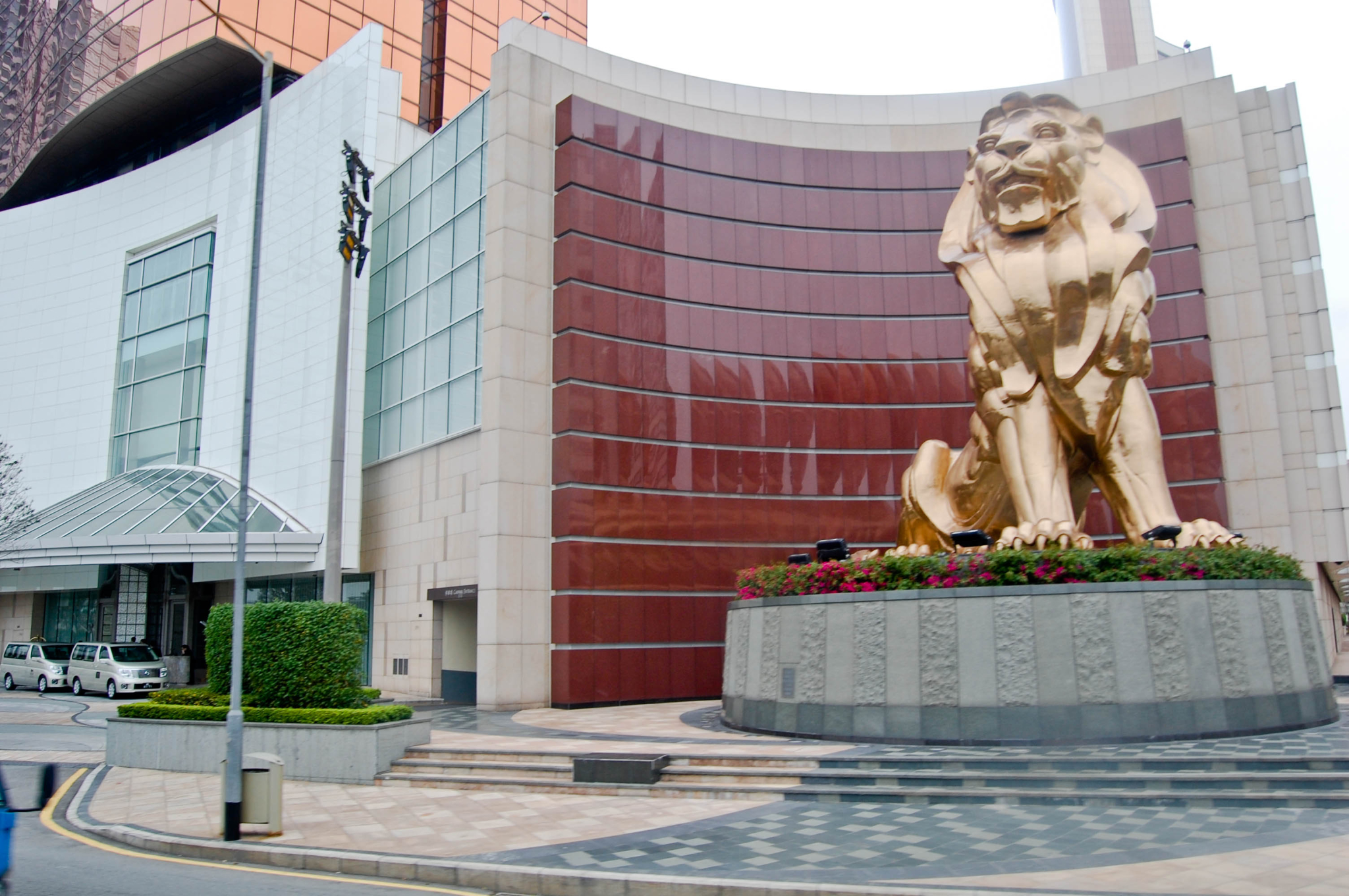 中心门两侧的狮子 …貌似和内地的狮子 完全不属于一个品种…比如 内地是一头小卷~而澳门 的发型为刺头~内地口中含的是灰色球~澳门 的则是猩红色的球~等等~