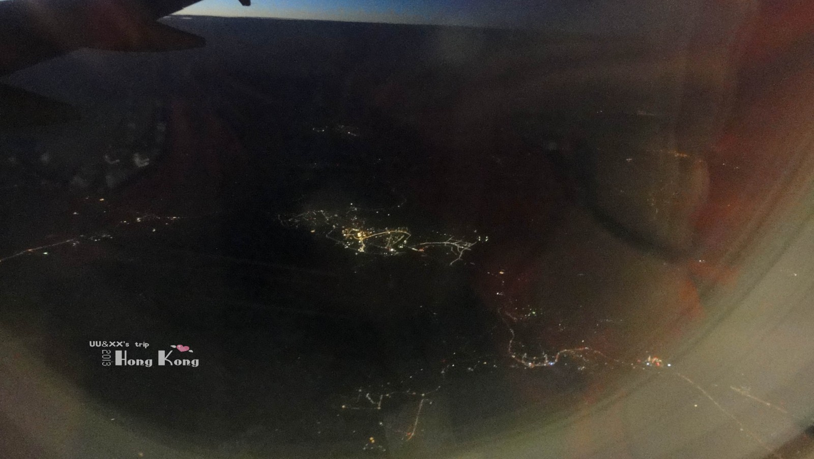 天色转为深蓝,但光线还是很强。偶尔透过云层依稀看到地面上零星的霓虹。夜幕下的城市,似乎比白天多了几份妖娆感。越是繁荣的城市,灯光越是明亮。
