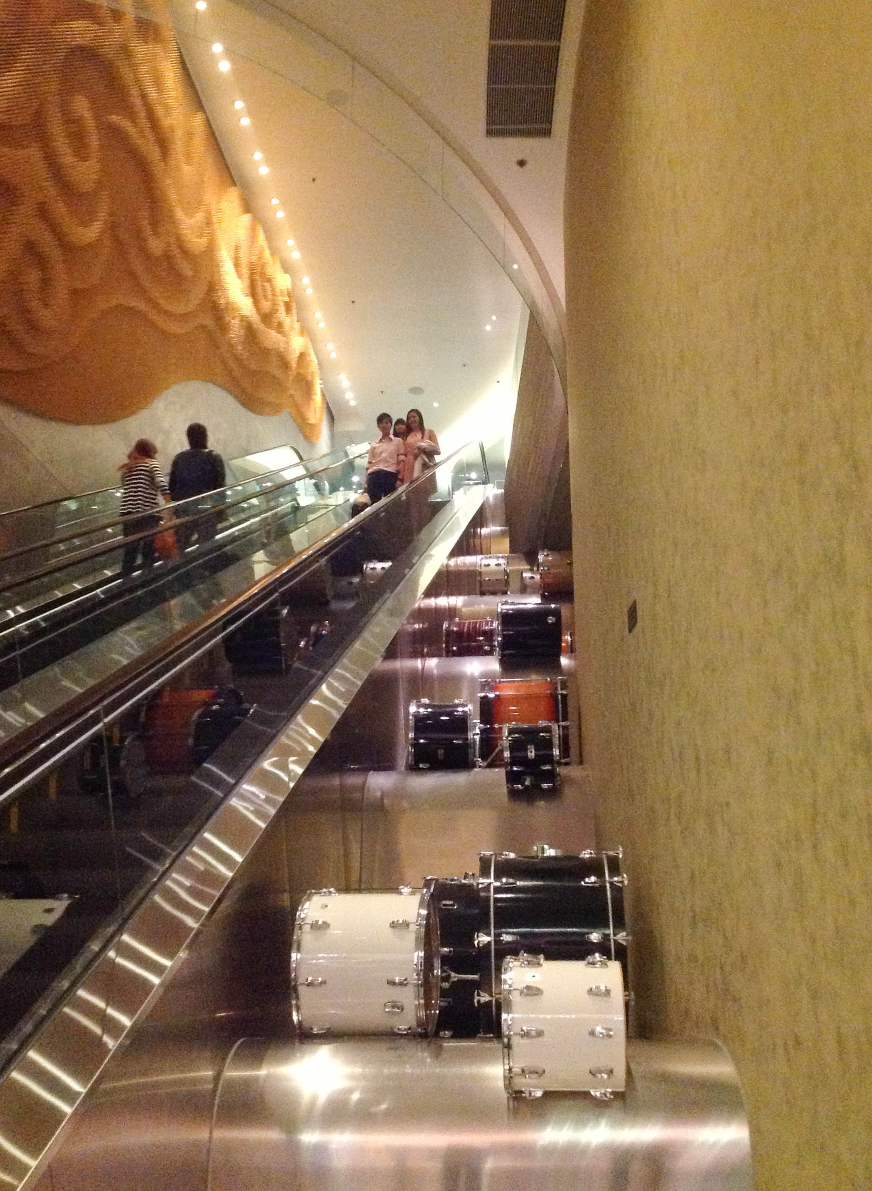 通往二楼的电梯旁,用爵士鼓作为装饰~很特别~