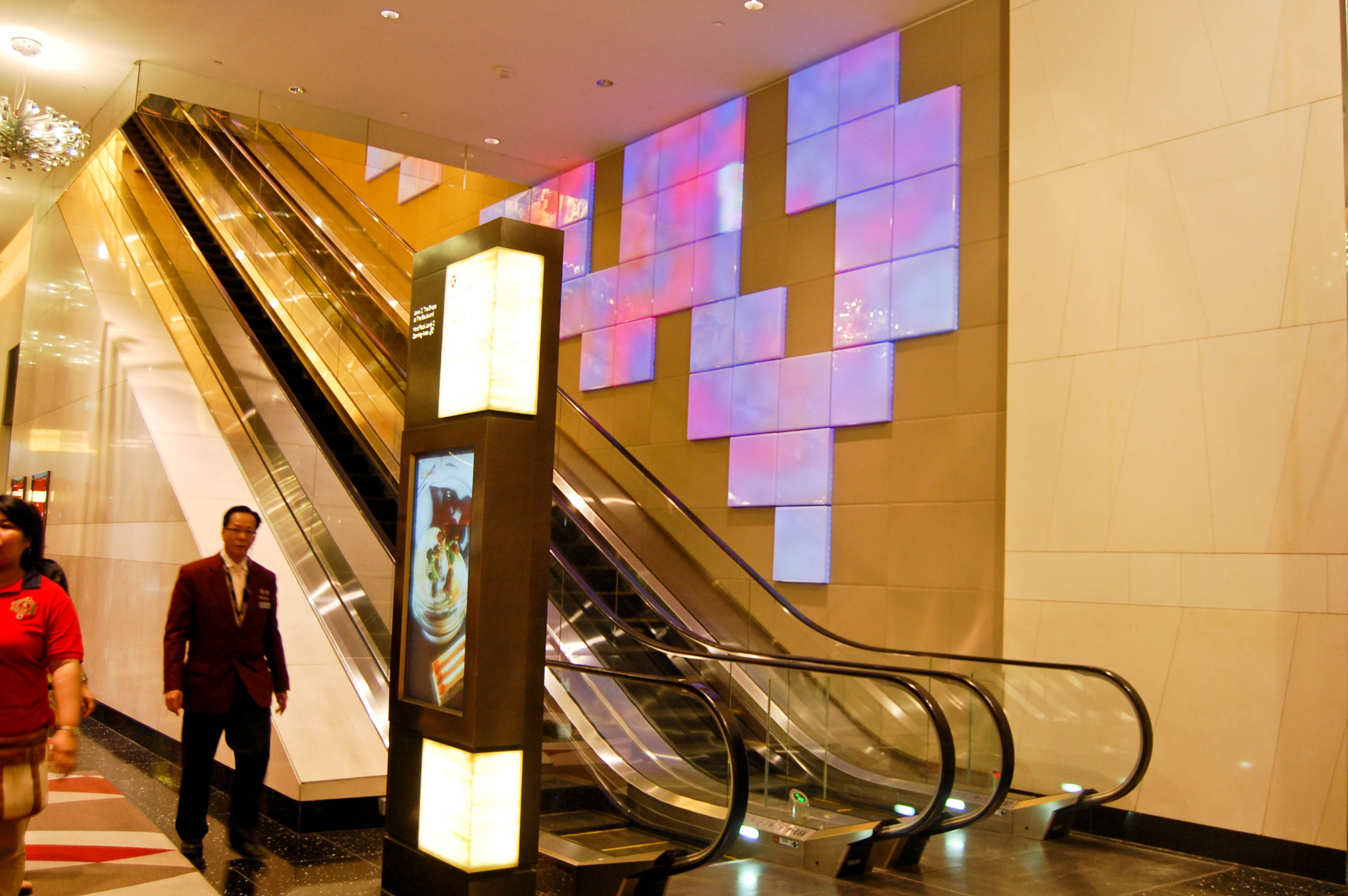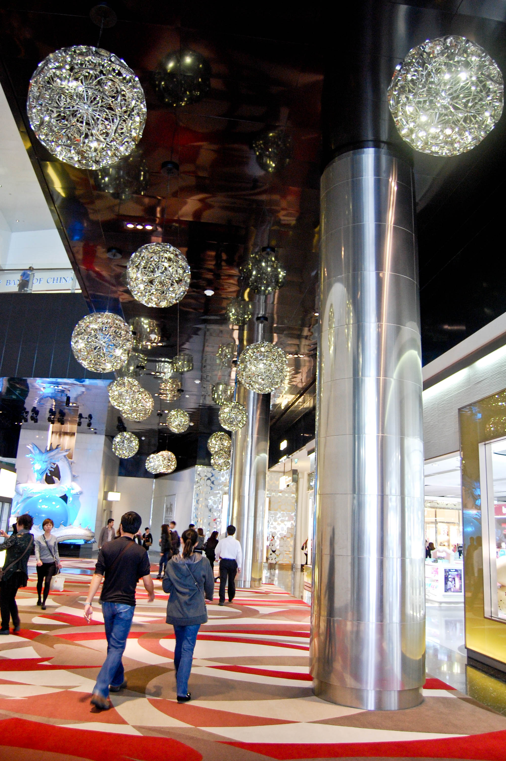 天幕,是一个圆形剧场,是新濠天地的建筑地标。10分钟的精彩娱乐表演讲述了龙珠和它赐给五大龙王神秘力量的故事,这五大龙王分别带着观众们一起体验立体、奇幻的感官历程。但由于时间有限,就木有去了~据说相当惊艳~有兴趣的朋友可以关注下。新濠大道是位于新濠天地的室内购物中心,共分为两个销售楼层,第一层为时装及饰物专区,奢侈品店云集~,第二层则为名表及珠宝世界。