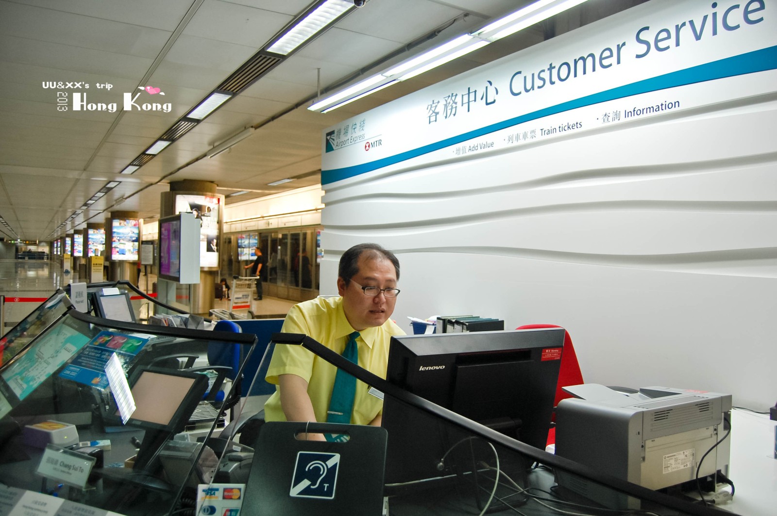 在机场内设有机场快线的客服中心,客服中心背后就是乘坐机场快线的小站台。在客服中心这可以购买八达通卡、一日通、两日通等各种你在网站上查询到的港铁卡。