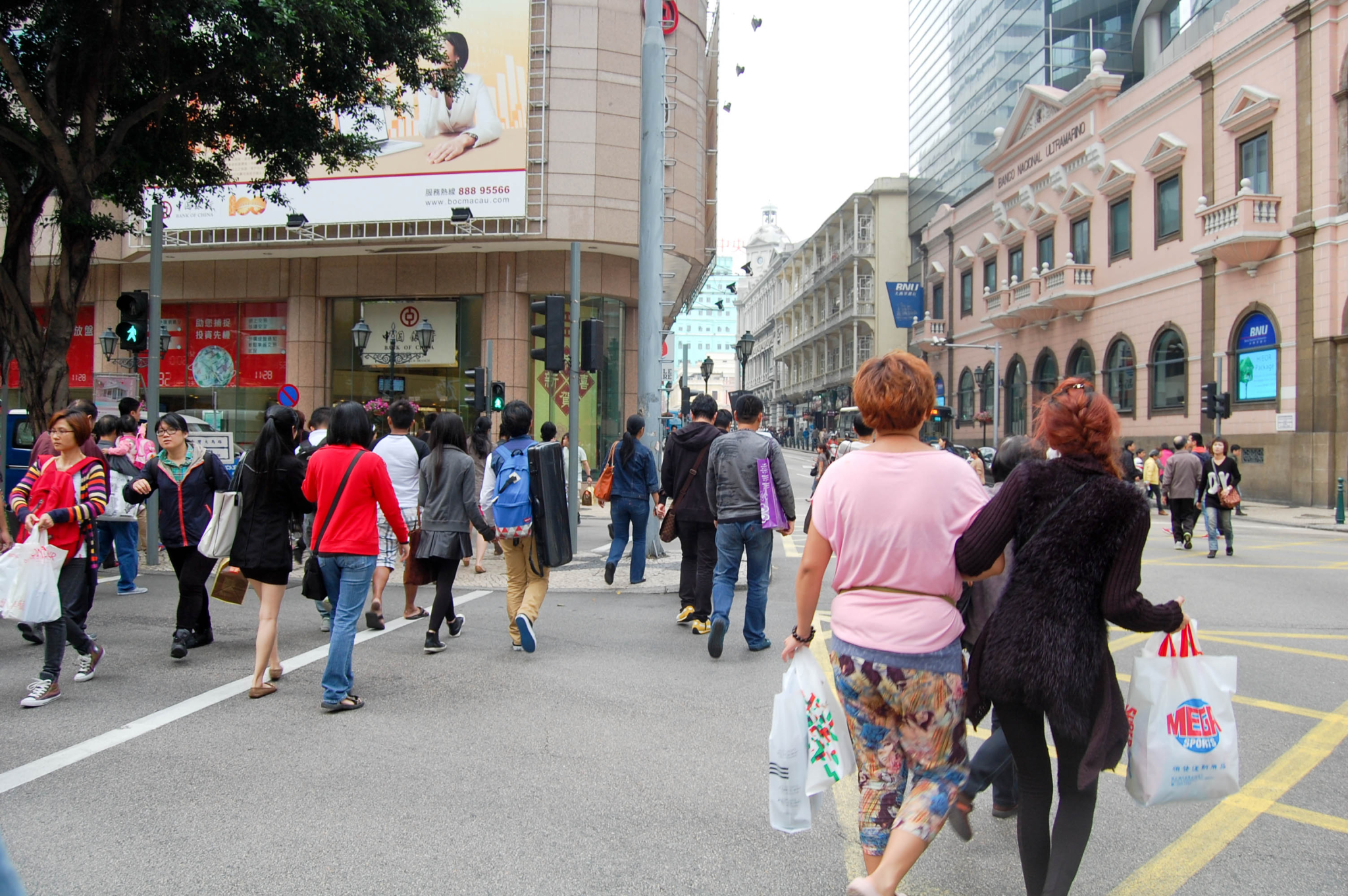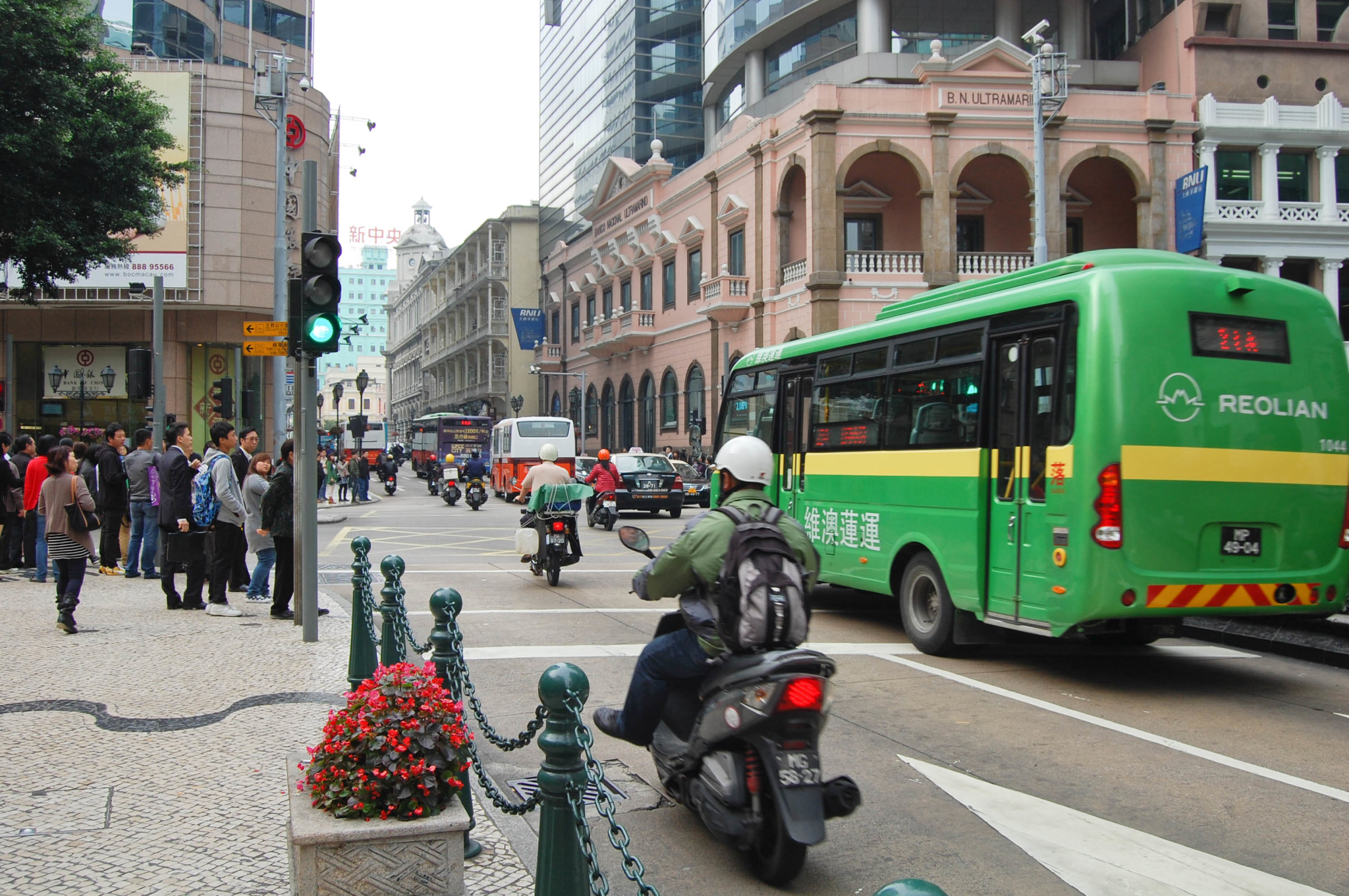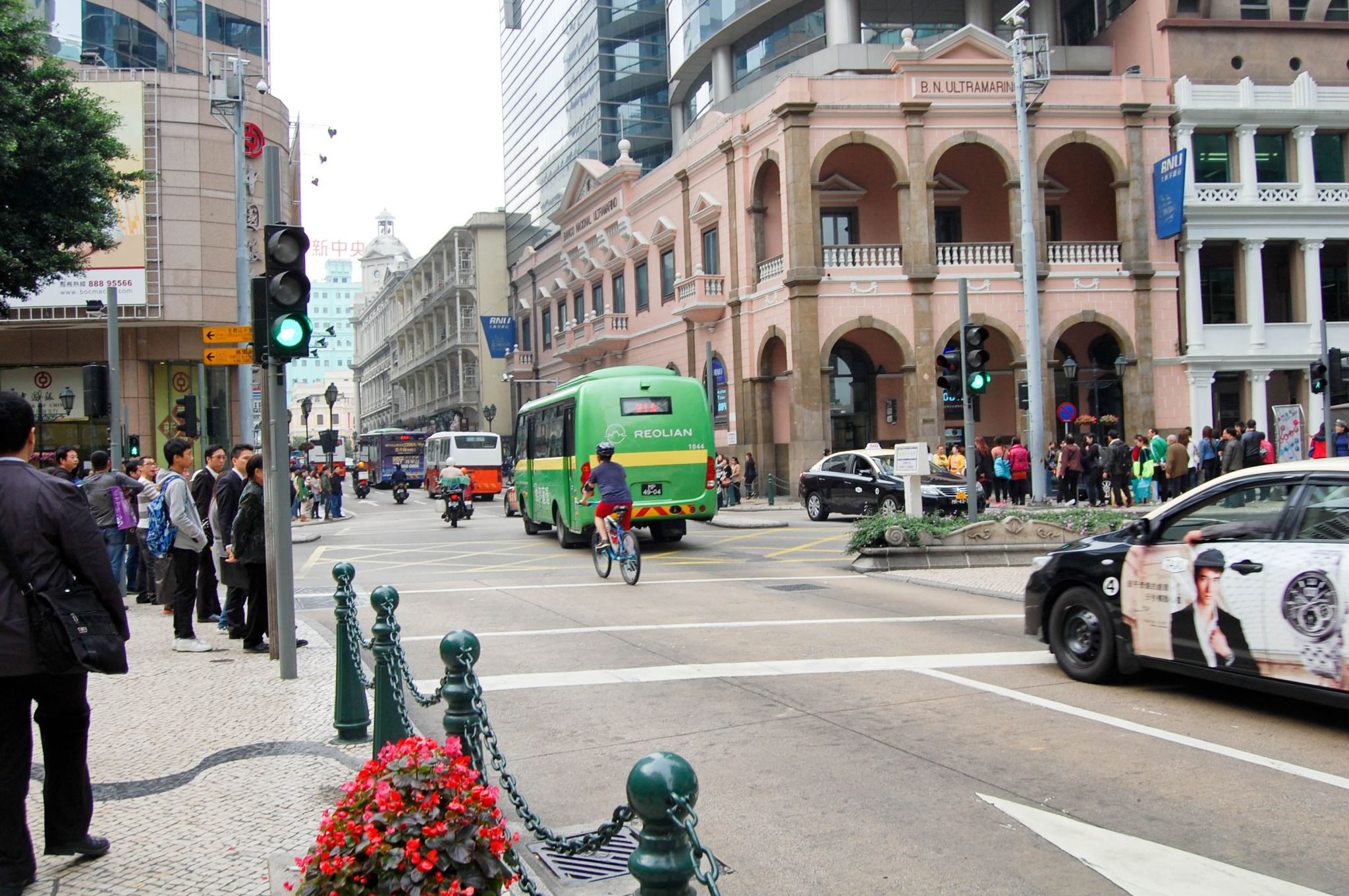 澳门 市区的马路比香港 要宽,但秩序稍混乱了些~