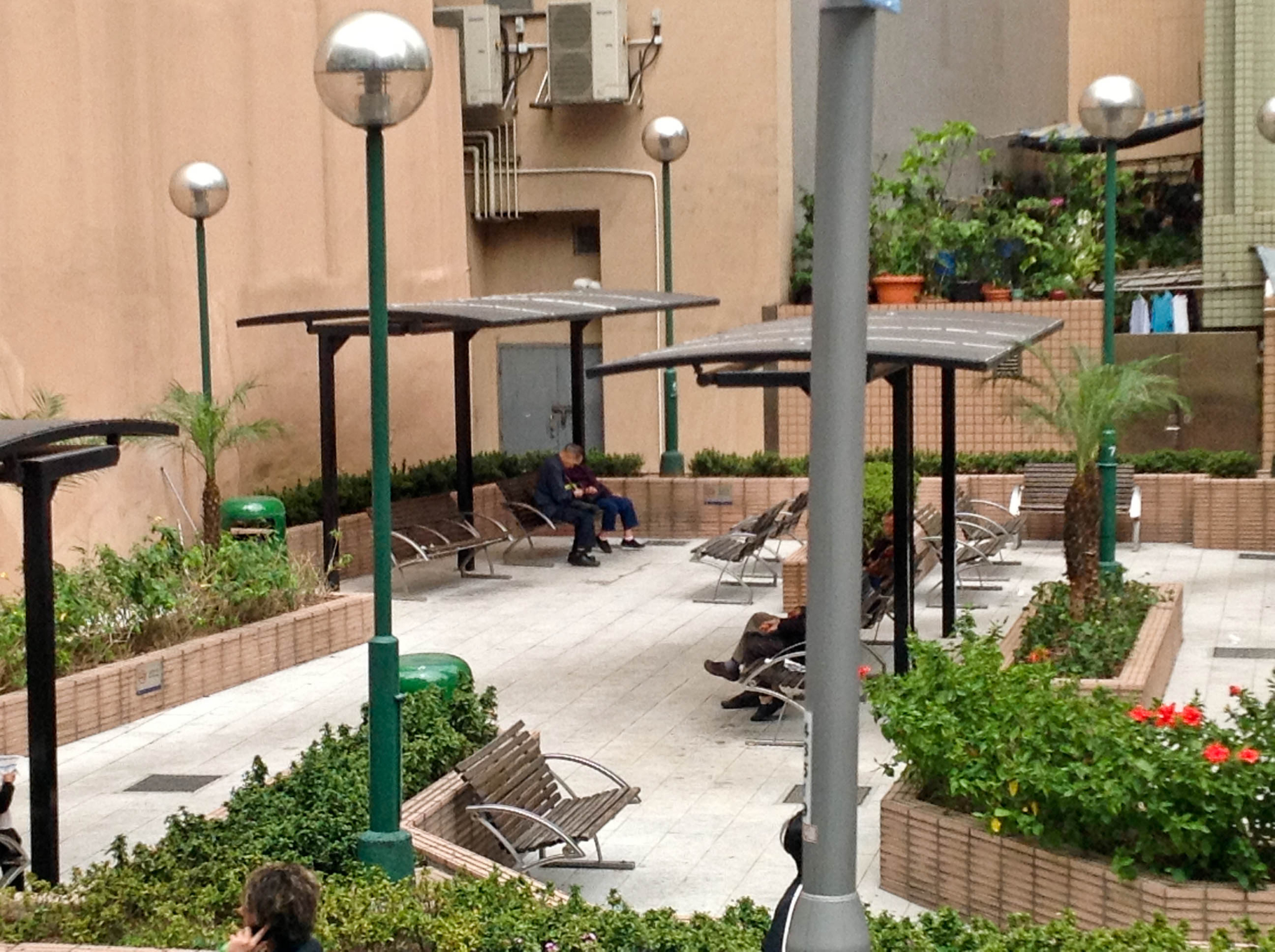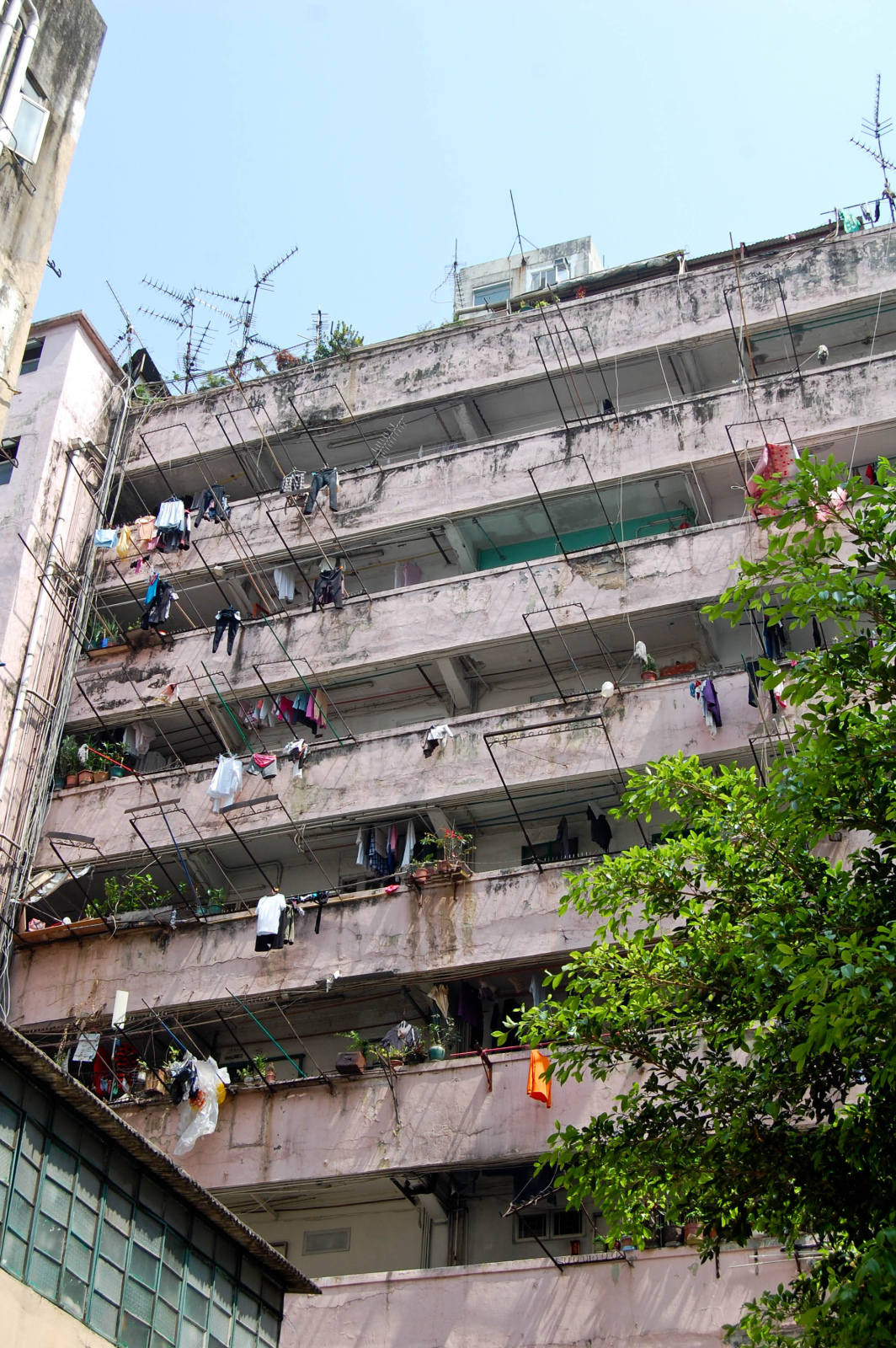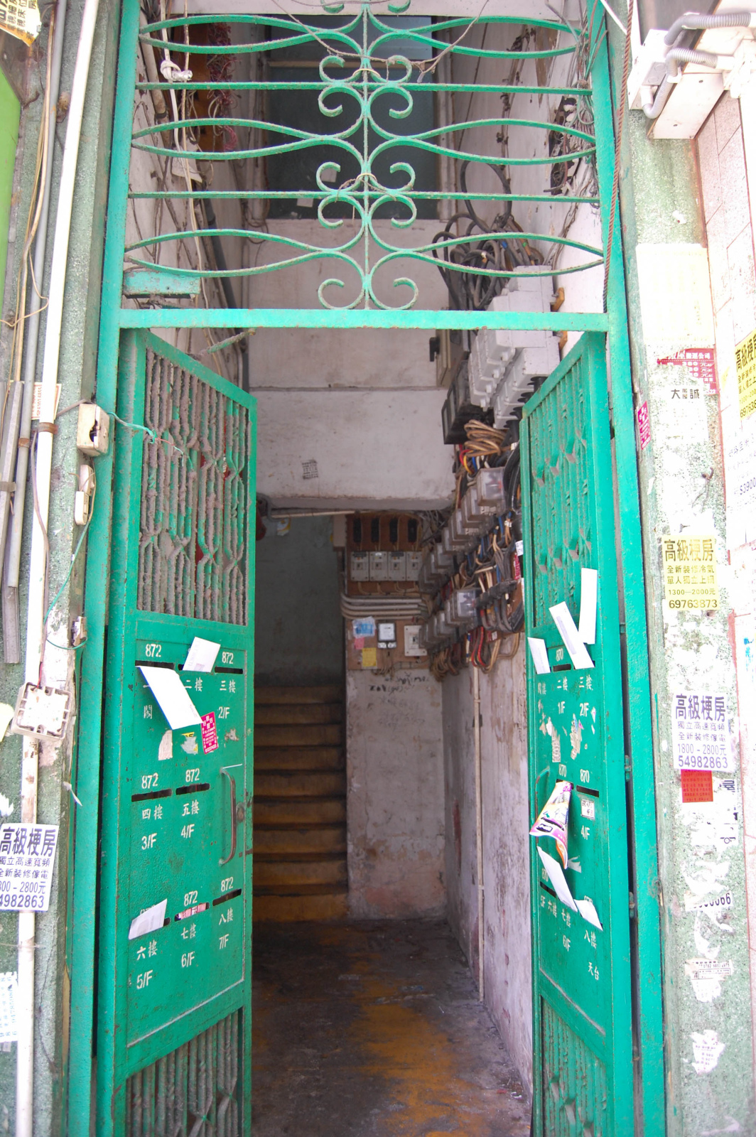 话说这图拍得有些吓人~不过实际也就差不多。当时自己心里也直敲鼓啊~住这里安全嘛…?!走上了楼梯,是一个室内平台~就像我们这边一楼入户大厅的平台~一层两梯~旁边还有一个格子间~里面有一屏四格的监控视频,旁边还坐着位很严肃的保安老伯~!在香港 的几天~每晚我们回来的都很晚~但没有哪一次看到他是闭着眼睛睡觉~或者在忙自己的事情~!始终是严肃地打量着格子间外的人员,值班相当敬业!当然了~也不排除人家很防着咱大陆妹…哈哈~