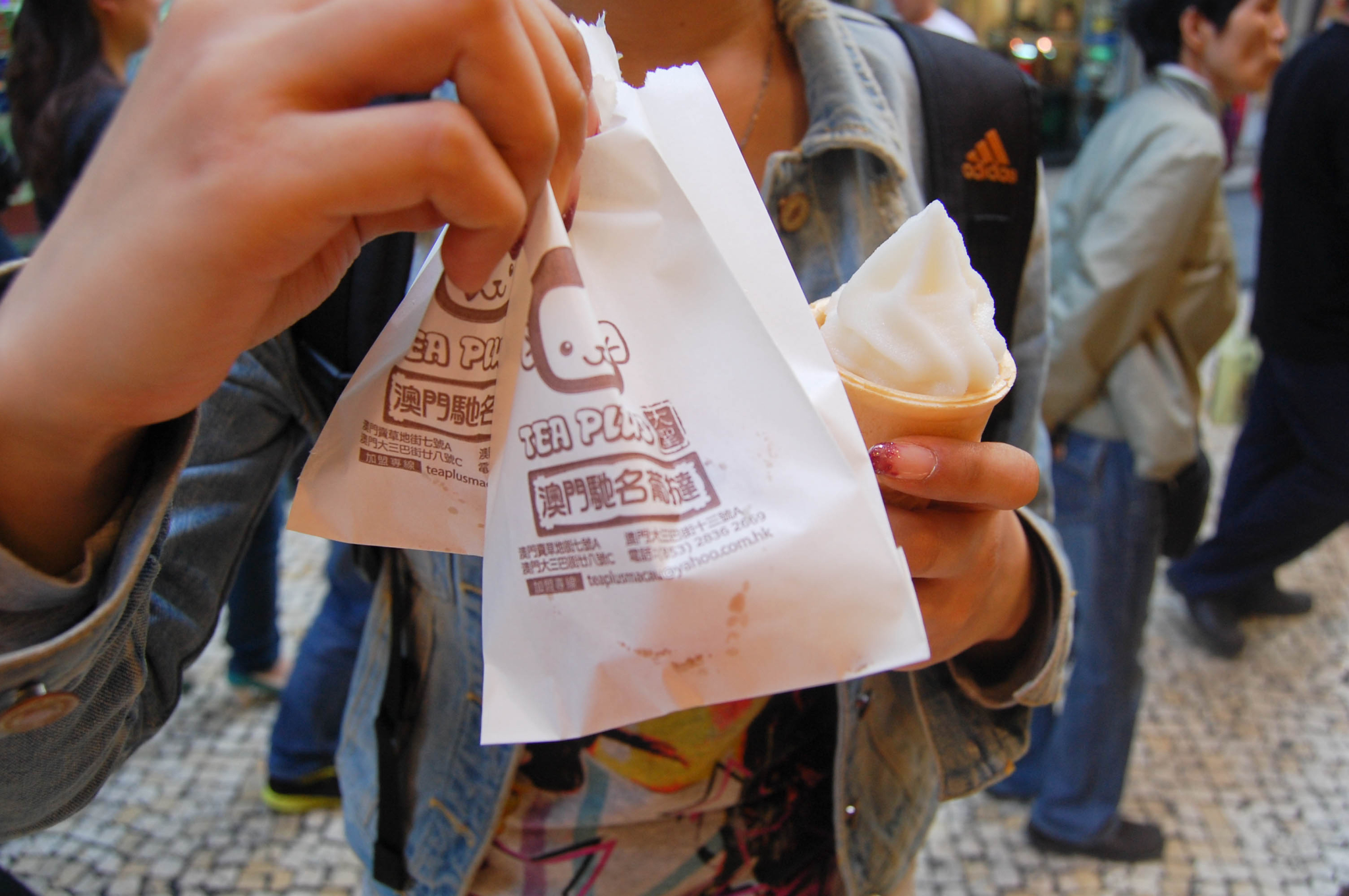 这家店被《花样男子》主角在大三巴取景时大赞过~,尝了他家的驰名葡挞后,除了感觉皮稍微厚了些~个头小了些~没神马其他记忆料~~~冰激凌口感一般~