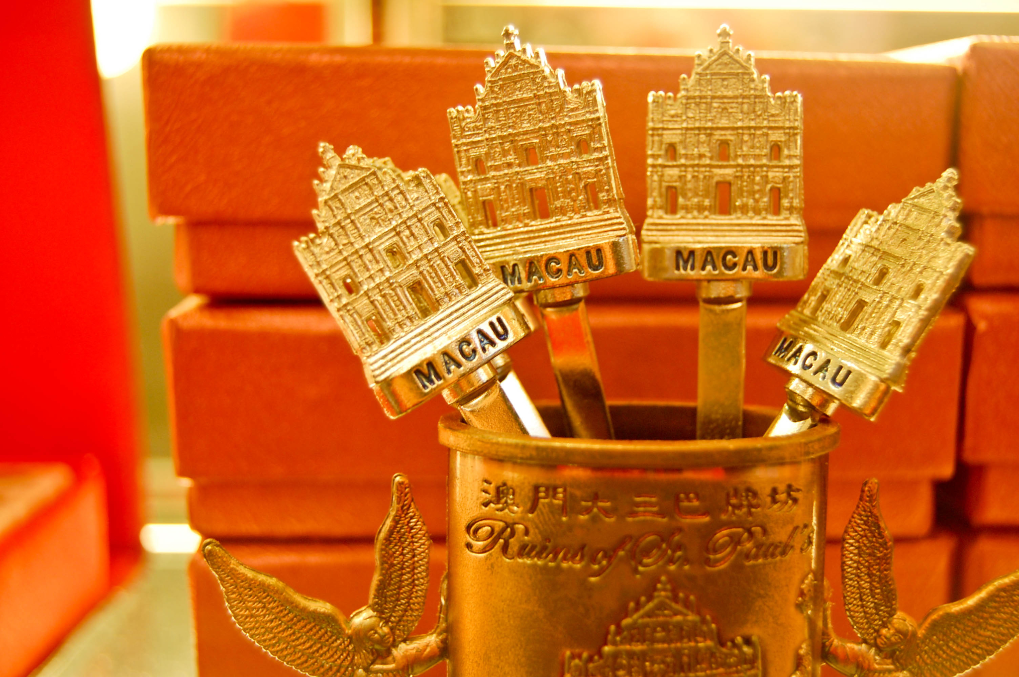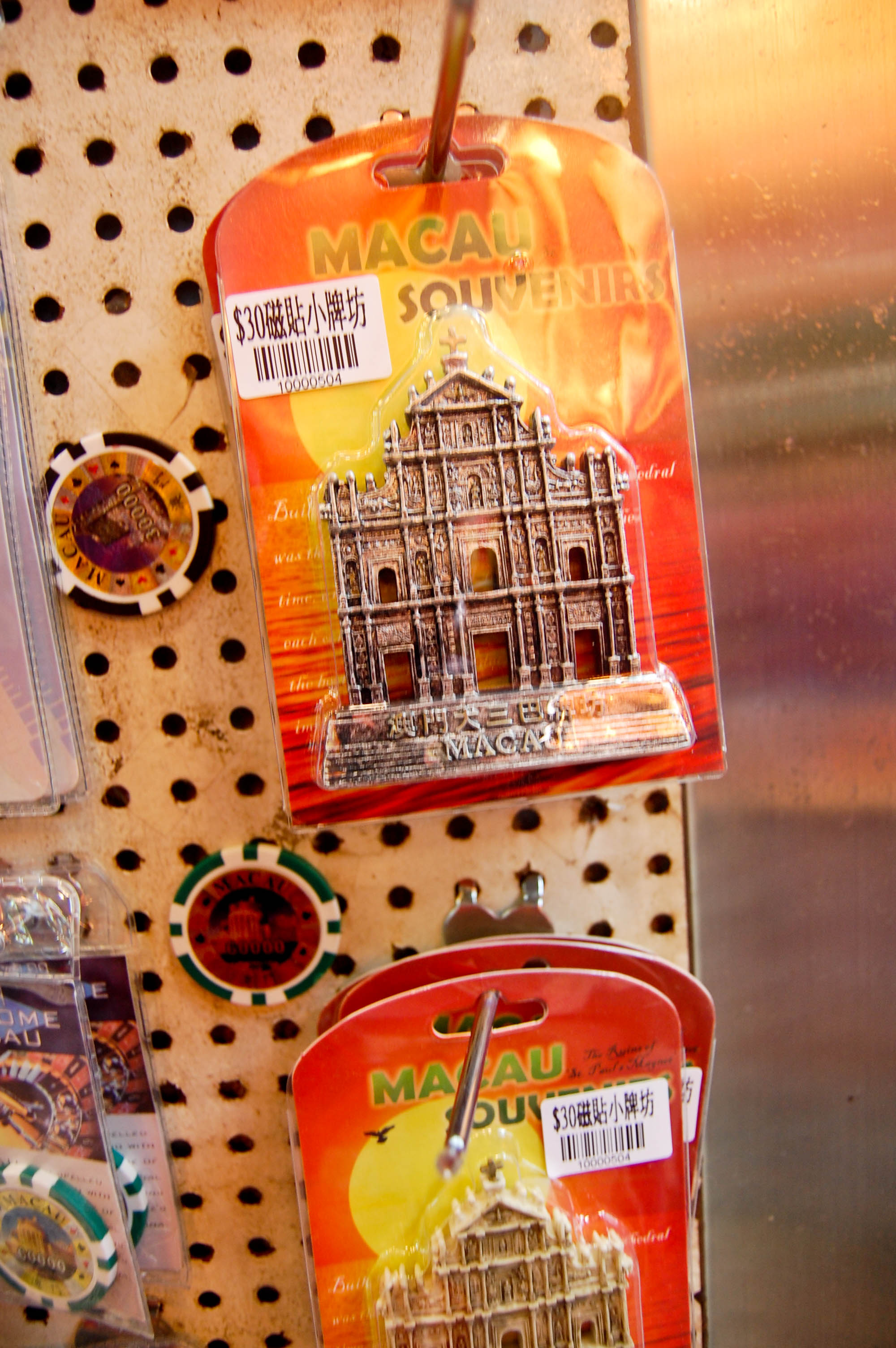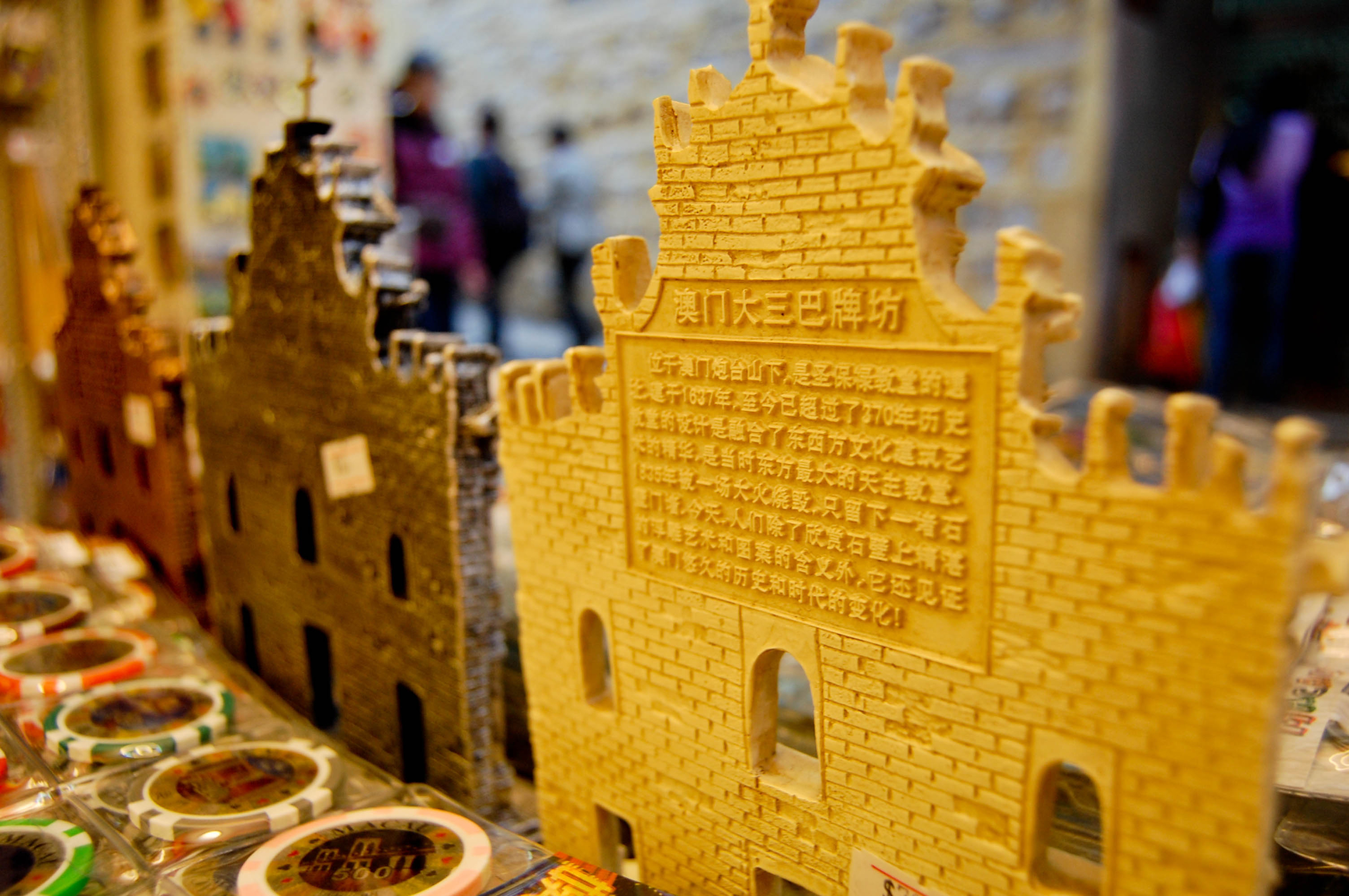 临街小店,出售着很多关于澳门 和大三巴牌坊 的纪念品~