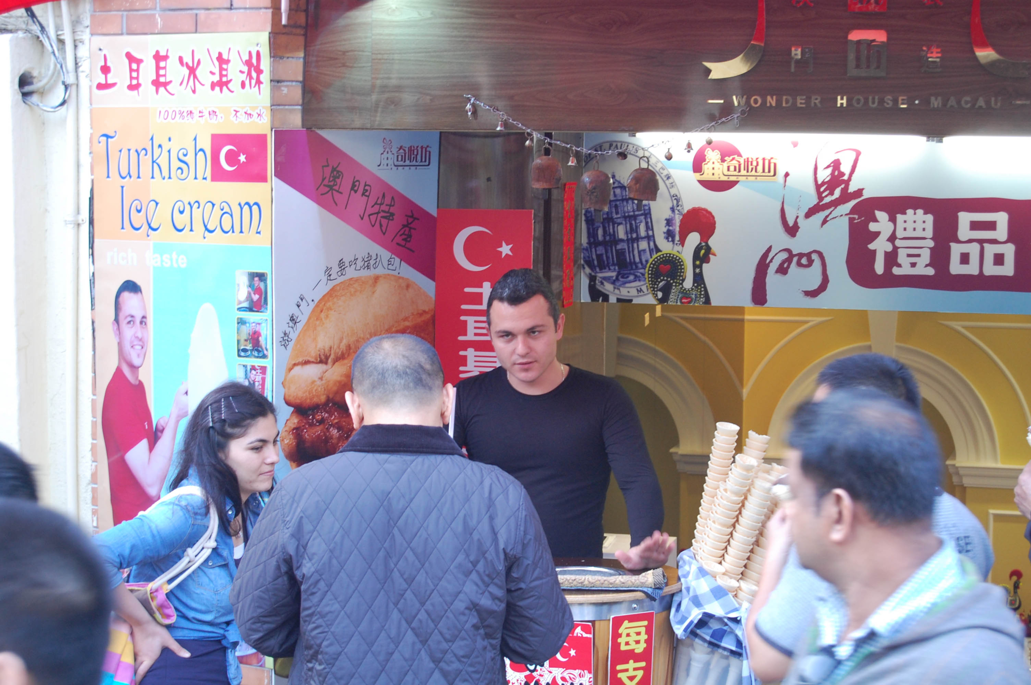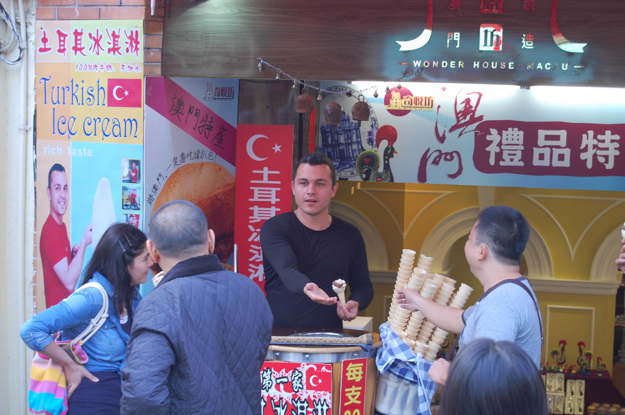 大三巴台阶旁~有一家土耳其 冰激凌~男店主长得有点莱昂 纳多唷哈哈~卖雪糕的莱昂 纳多~