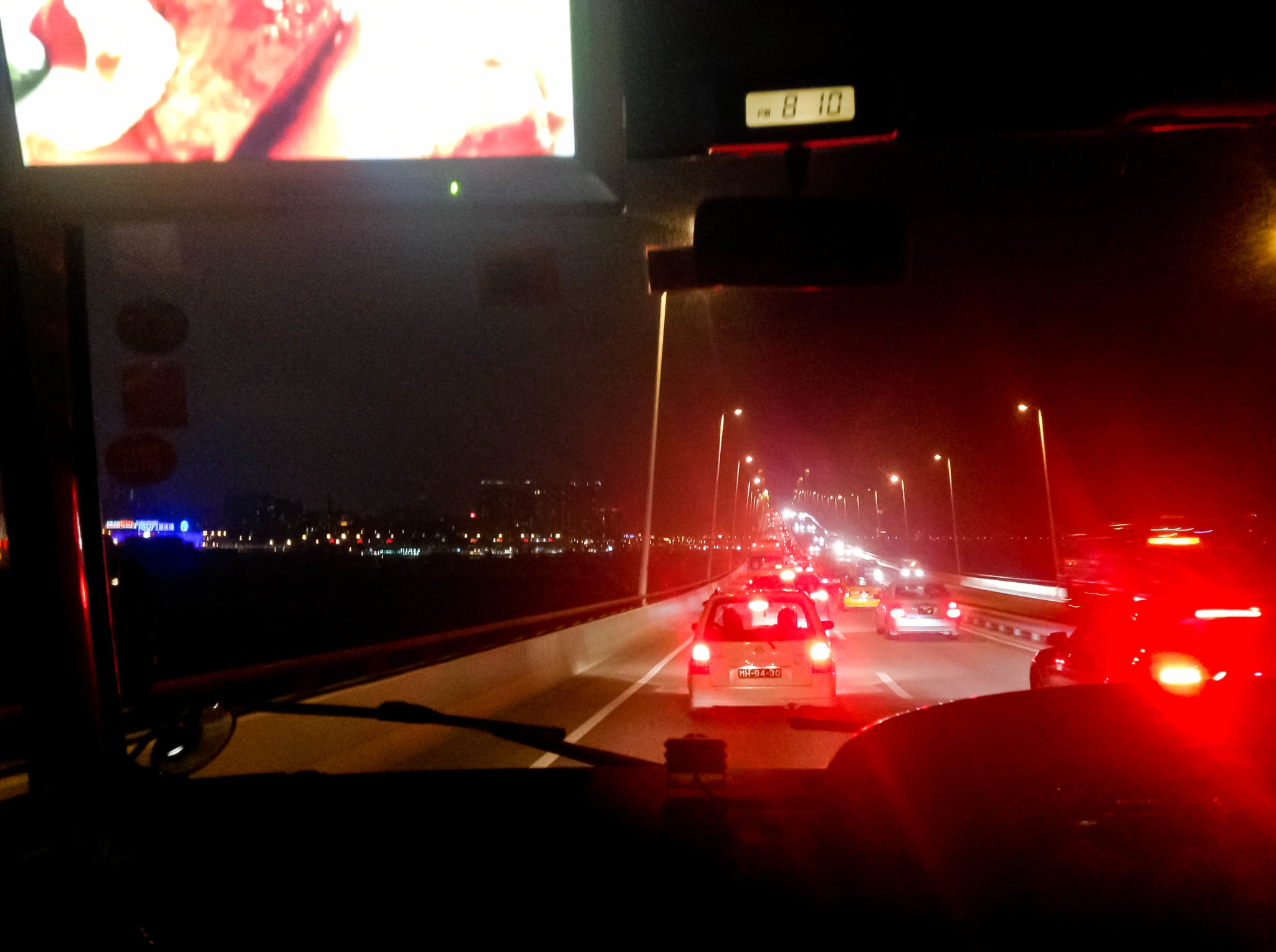 没等一会,车就来了~基本是随到随走,直奔氹仔市区。一路上车不多,行车秩序良好,车速也挺快~