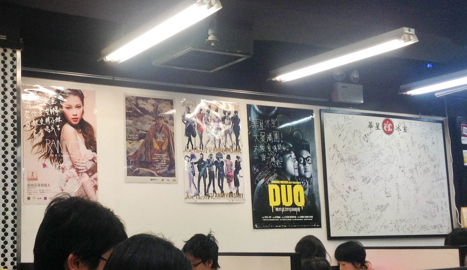 华星冰室 的装修和大多冰室、冰厅的差不多,唯一不同的是四壁上贴满了明星的签名大海报~多是祝生意越来越好的内容~
