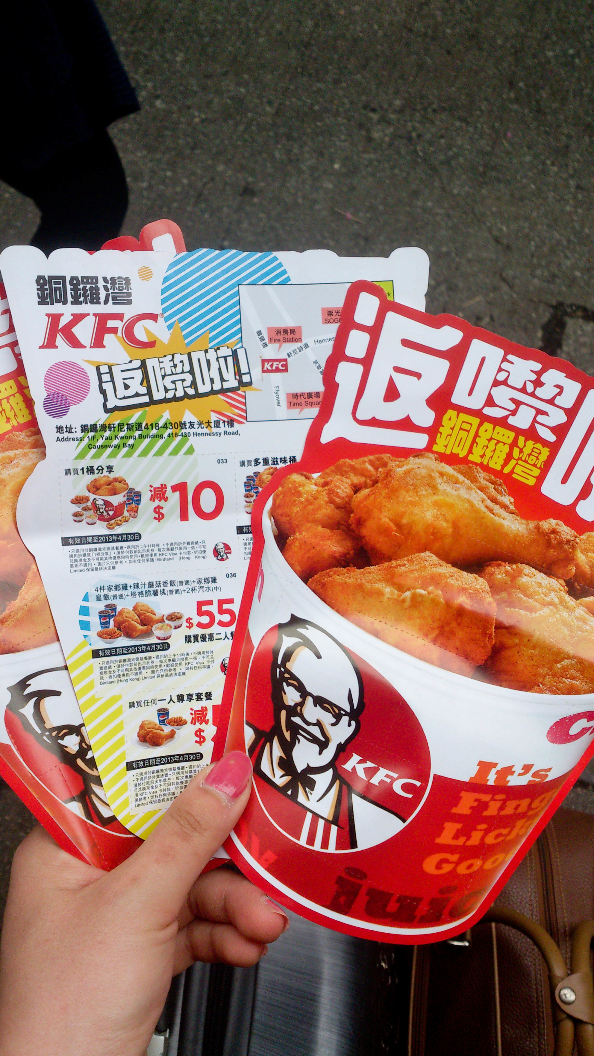 在住处的对面就有机场大巴A21的车站,通常是12分钟一班车。等车期间,有人发了几张KFC的优惠券,和内地的造型完全不同哈~