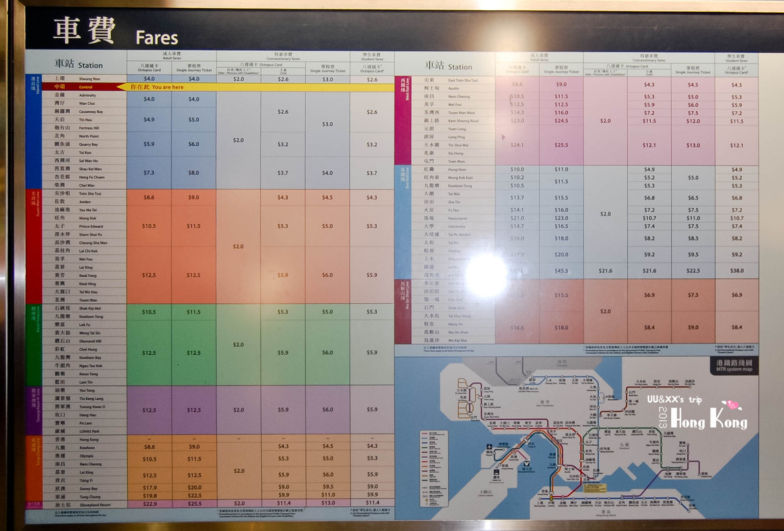 在这说一下,我们住宿订在铜锣湾,从机场去铜锣湾没有直达的公交和地铁~当时已经快晚上九点了,为了能尽早到住的地方,我们选择最快的机场快线。速度快~价格当然也不会低啦~100港币/次~得~用金钱买时间嘛~。在香港 坐地铁办八达通就相当于合肥 的“合肥 通”很便捷~可以刷卡乘地铁~也可以刷卡购小额的物品。不用专门换零钱,为了接下来的几日方便,我们购买了一张八达通卡~价格150港币~内含50港币的押金和100港币的机场快线。(从这里开始,文中以下使用的货币均为港币HK$,特别标注的除外^_^。如需换算成RMB~请直接乘以0.8就噢咔啦!)