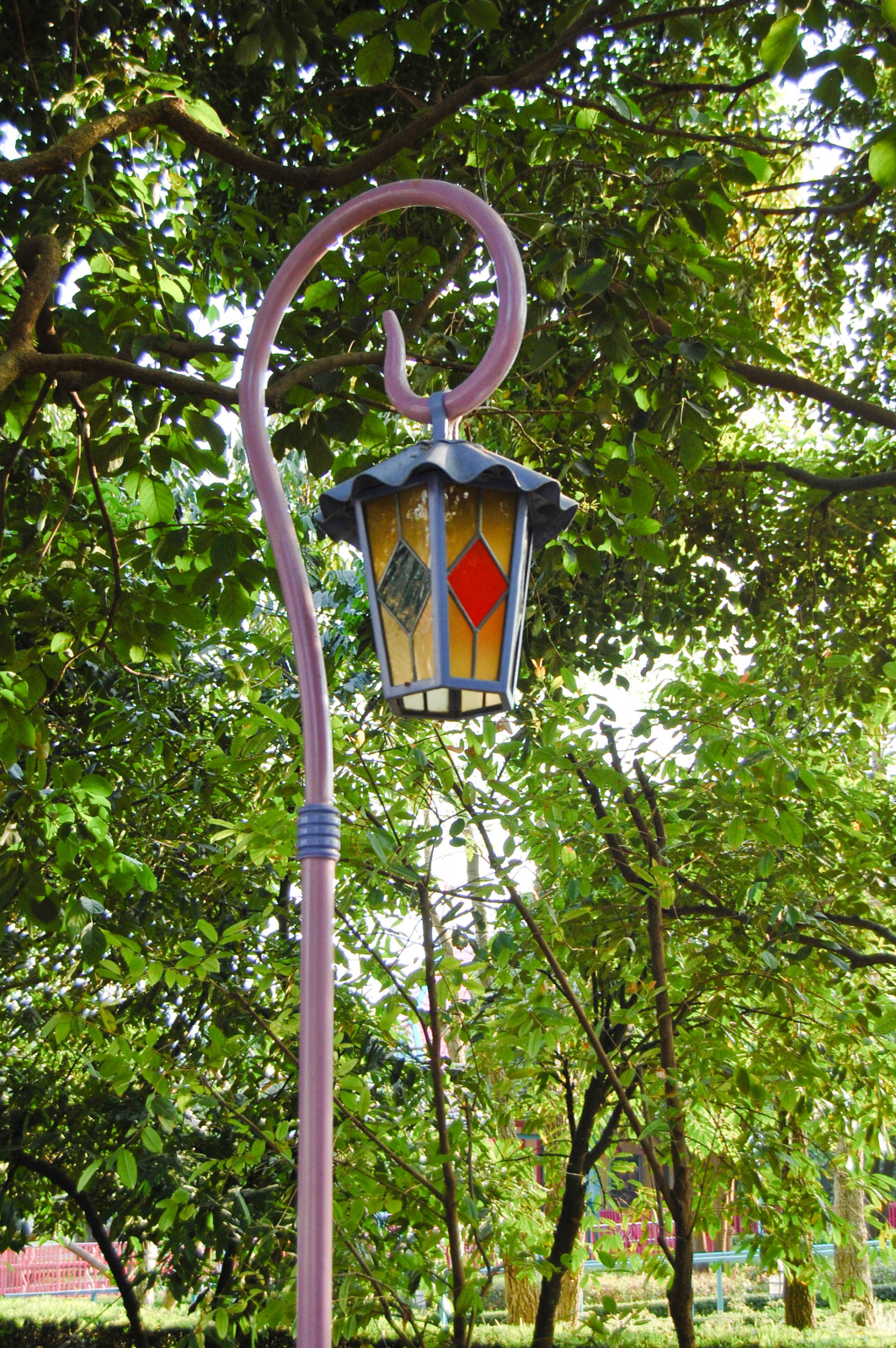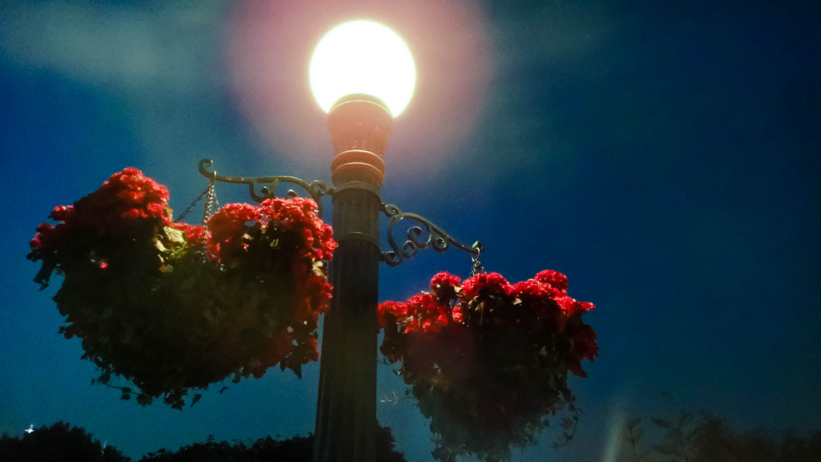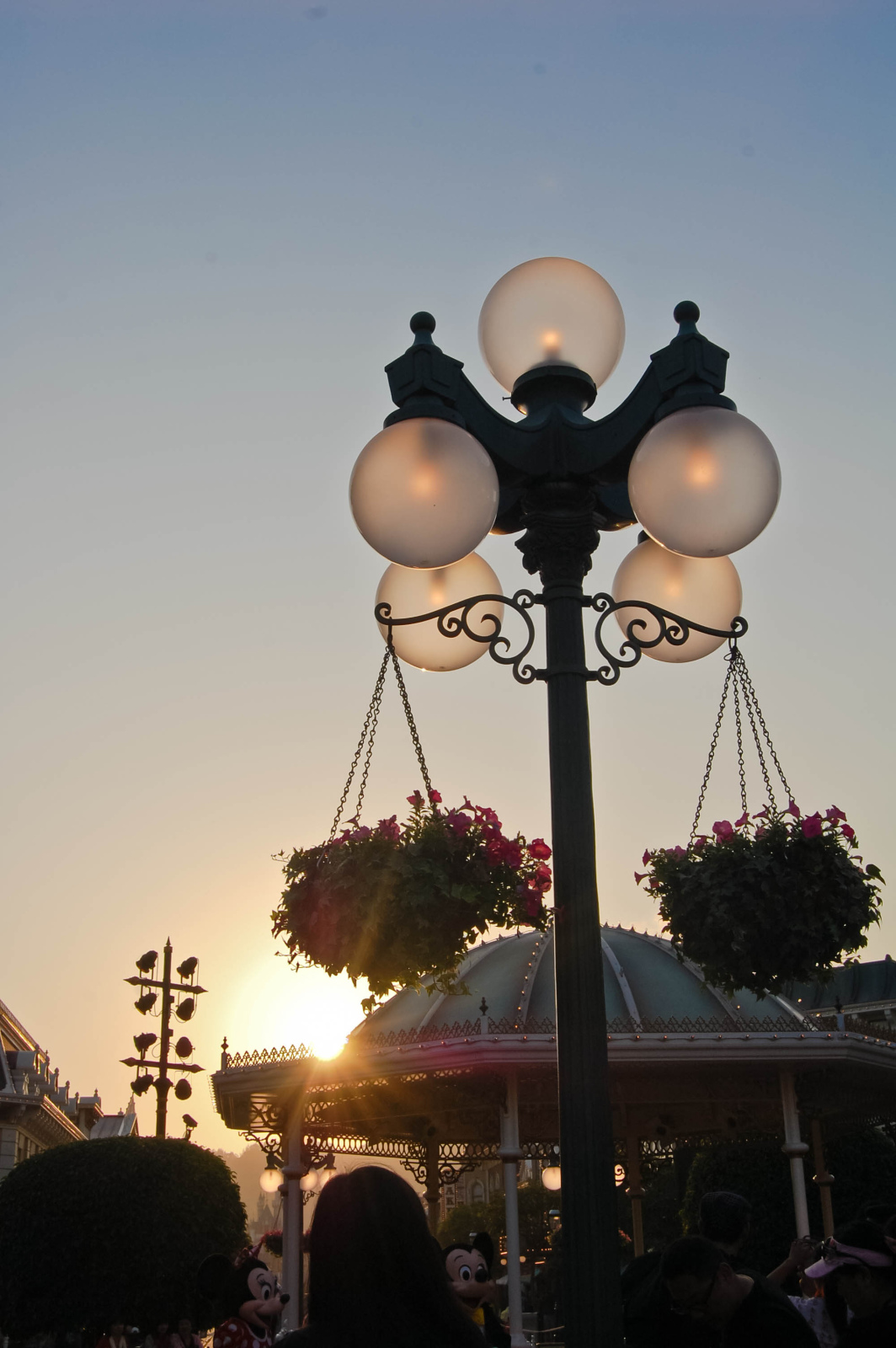 在一个挑起两盆花花的路灯下,我们下了车~~逛完后随时来这里都可以坐到回程的车~