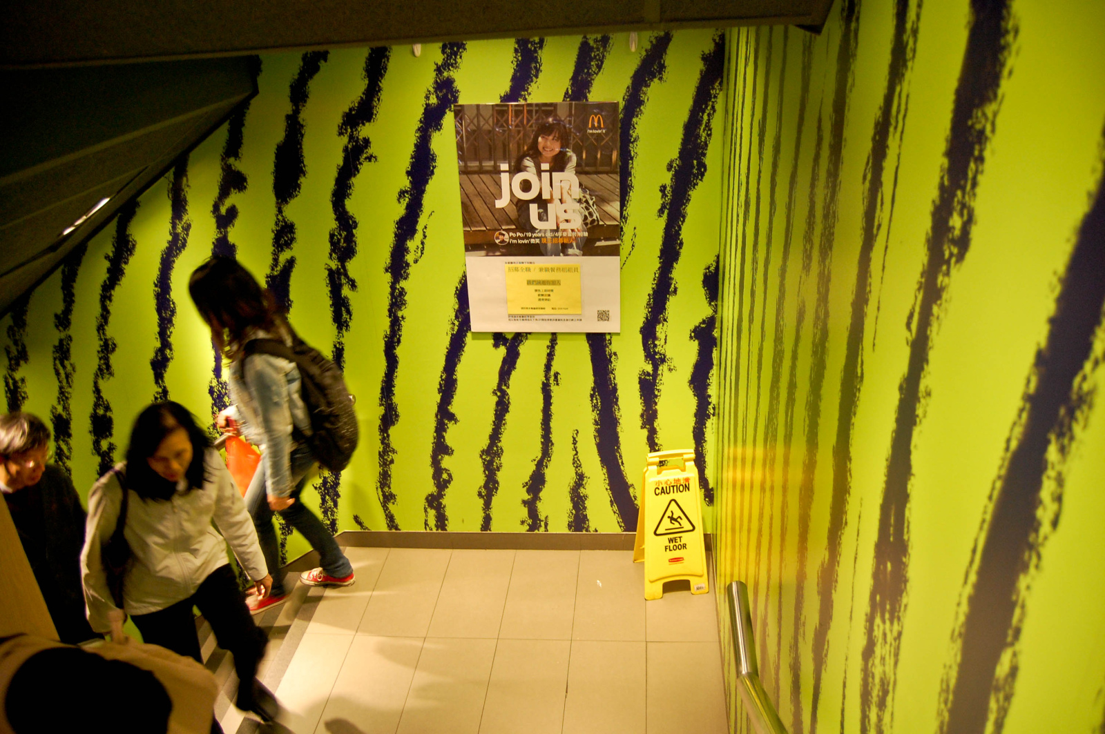 看到如此小门面的“海外大厦”,说真的特别失望...不过让我对香港 寸土寸金的意义~似乎有了一个更深的理解~进了门~沿楼梯往下拍一张