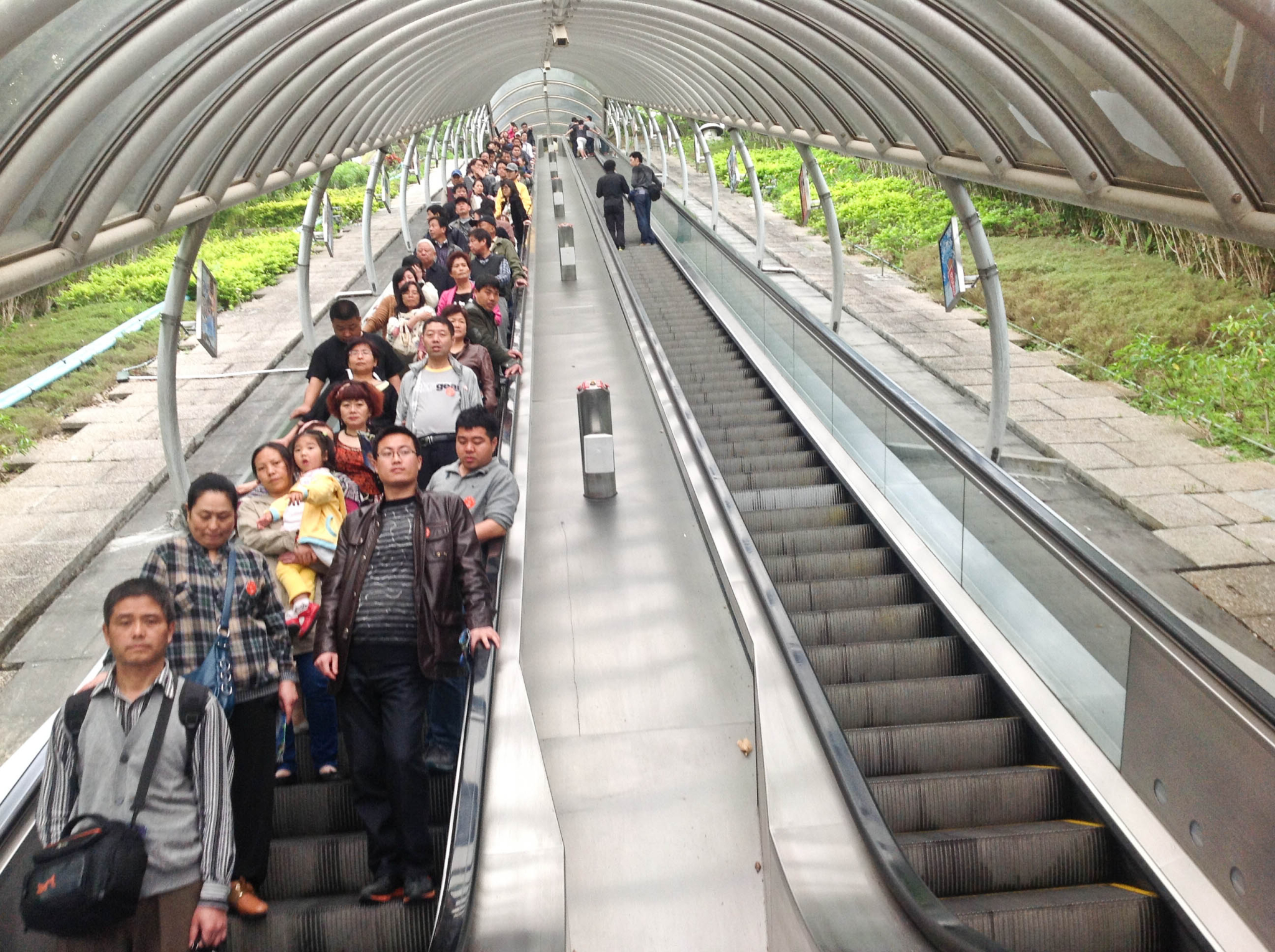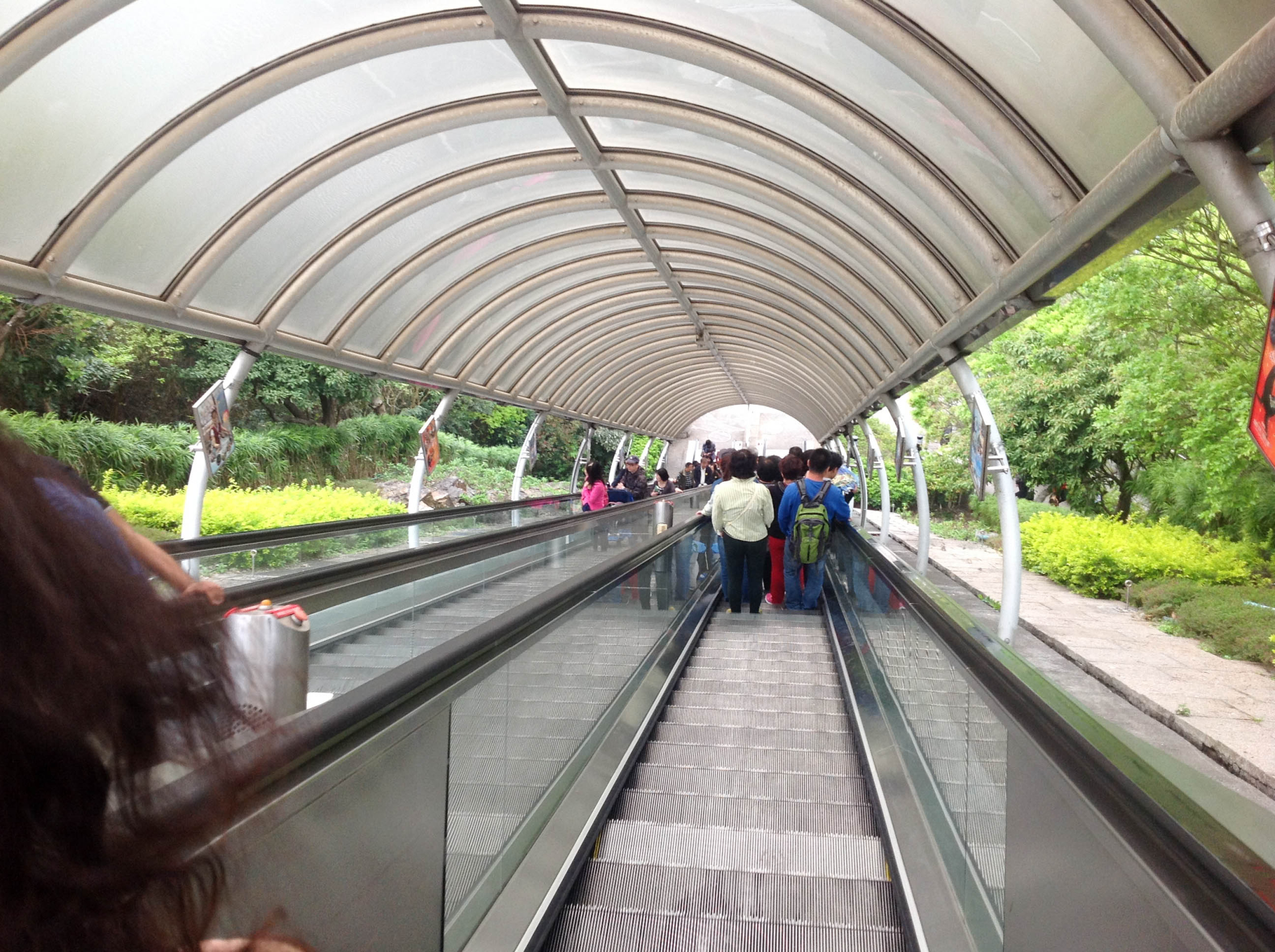 我们在17登机口。沿着这条通道 走到头再往右一拐~一个大通道 走下去就是了。左边一位身穿格子上衣的帅哥走在静止的自动扶梯上,而在香港 的几天里,这样的扶梯始终是开着的…