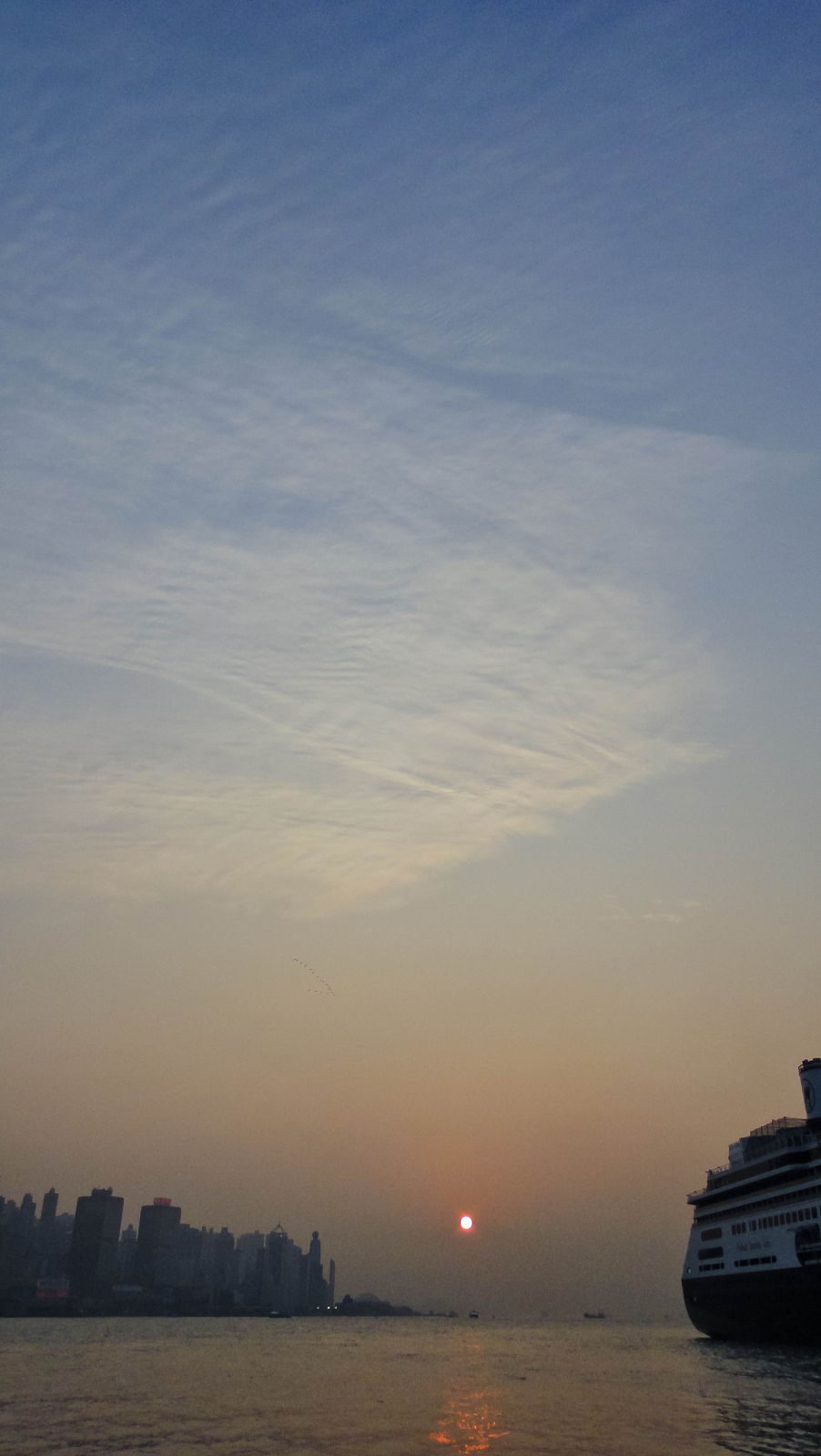 透过厚厚的云层,看着逐渐西沉的太阳,我们一跃离开了倾斜的地平线。