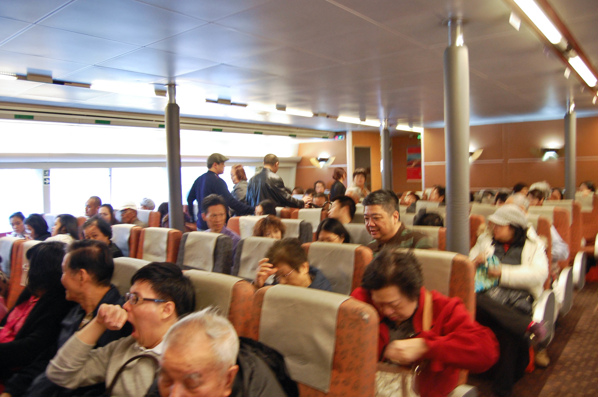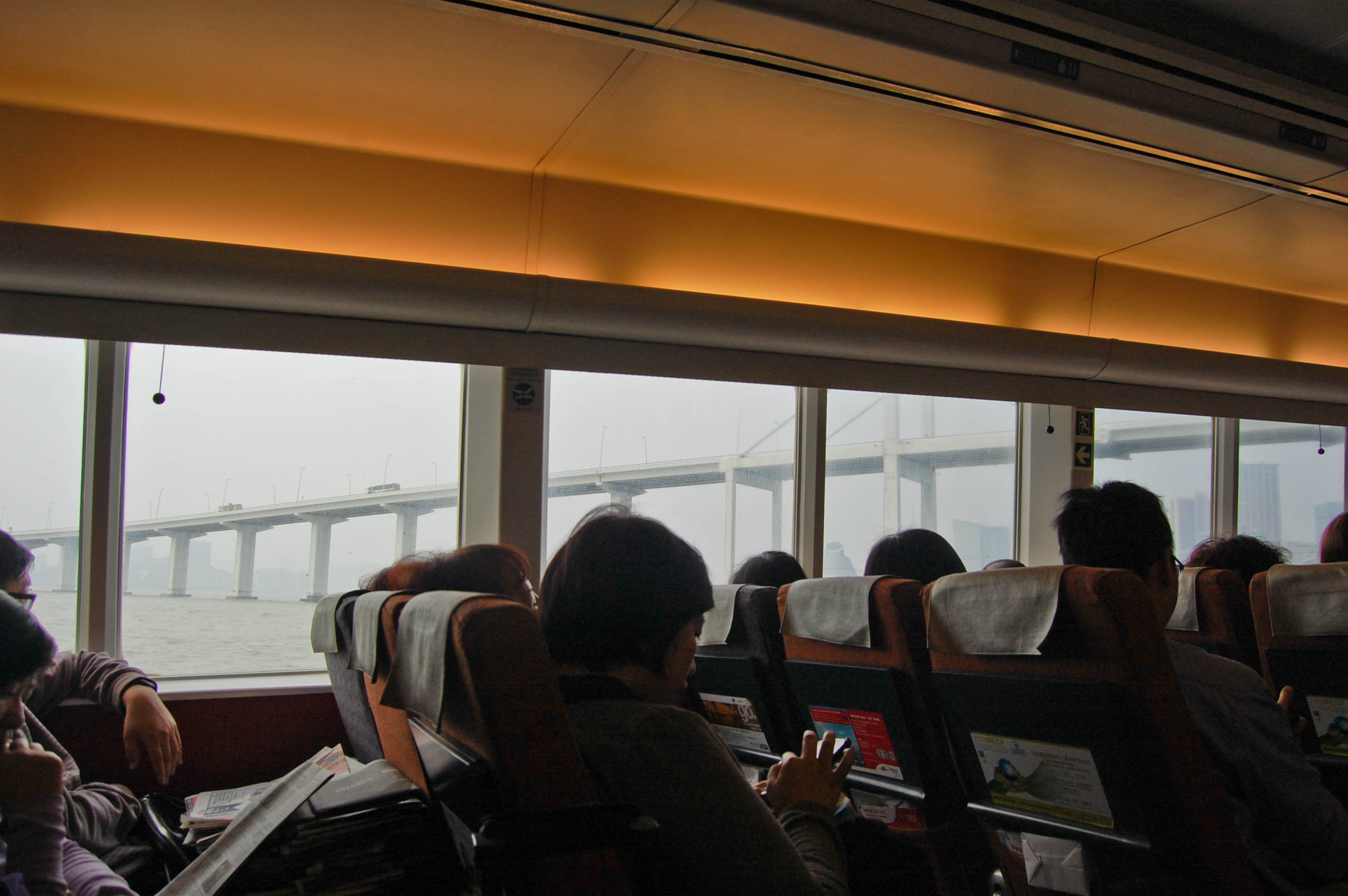 坐上去码头的专车,结果发现就昕昕和我两个人~原以为司机师傅会再等等人,等快坐满时再开车。不想,却直接开车了。司机师傅还开玩笑说,我们两个小丫头运气好~这等于是免费包了一辆去码头的车,应该去赌场好好玩一把。哈哈~