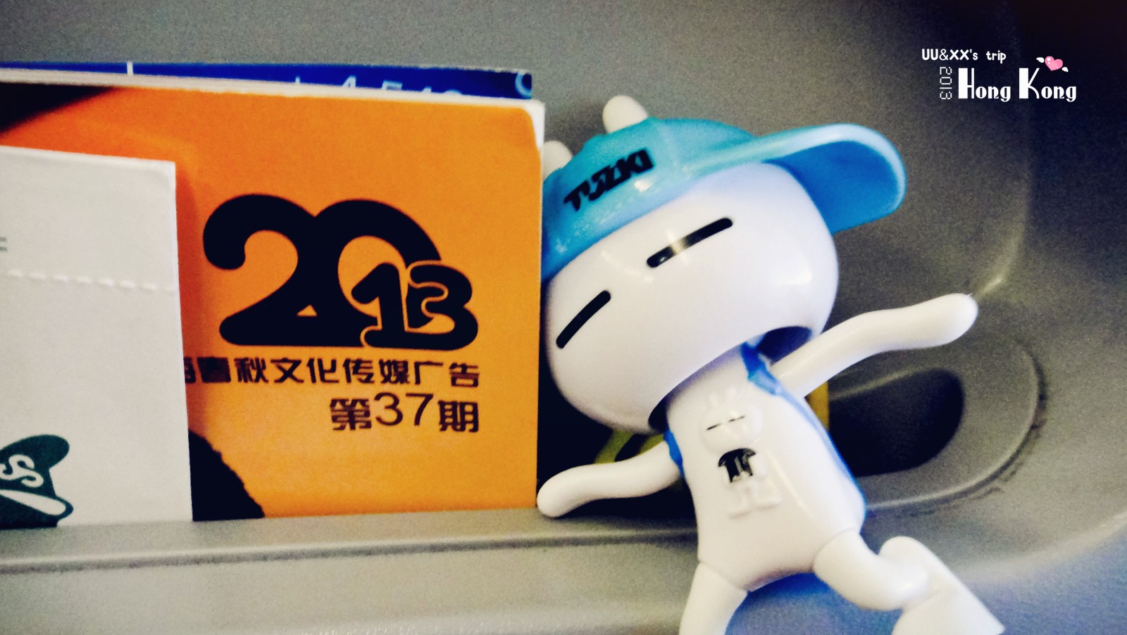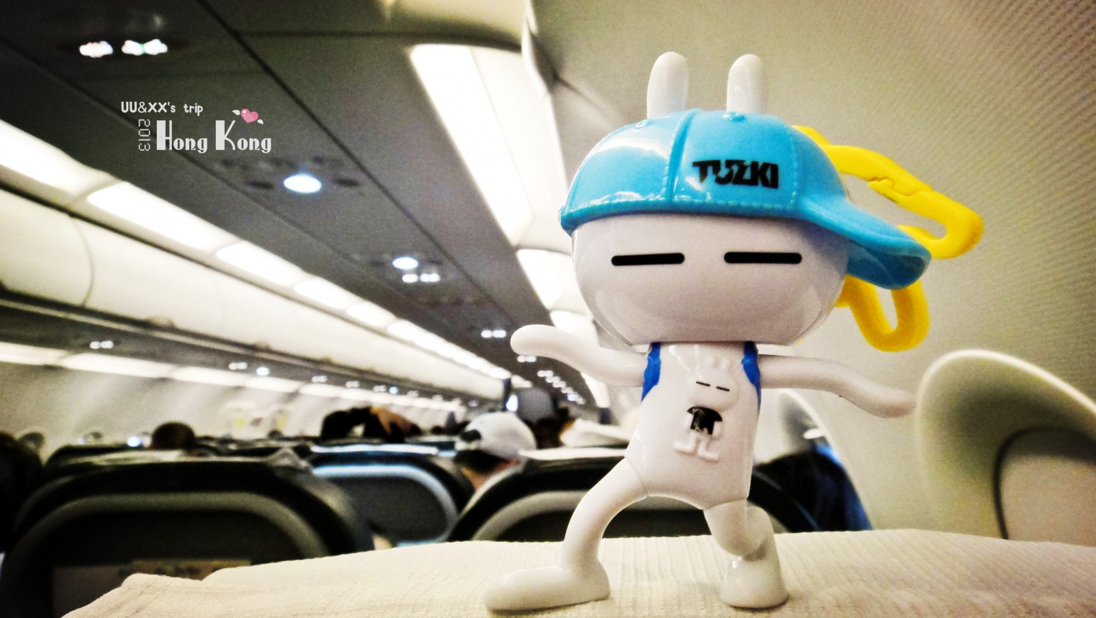 在飞机上闲着无聊~拿出背包上的兔斯基打发时间~