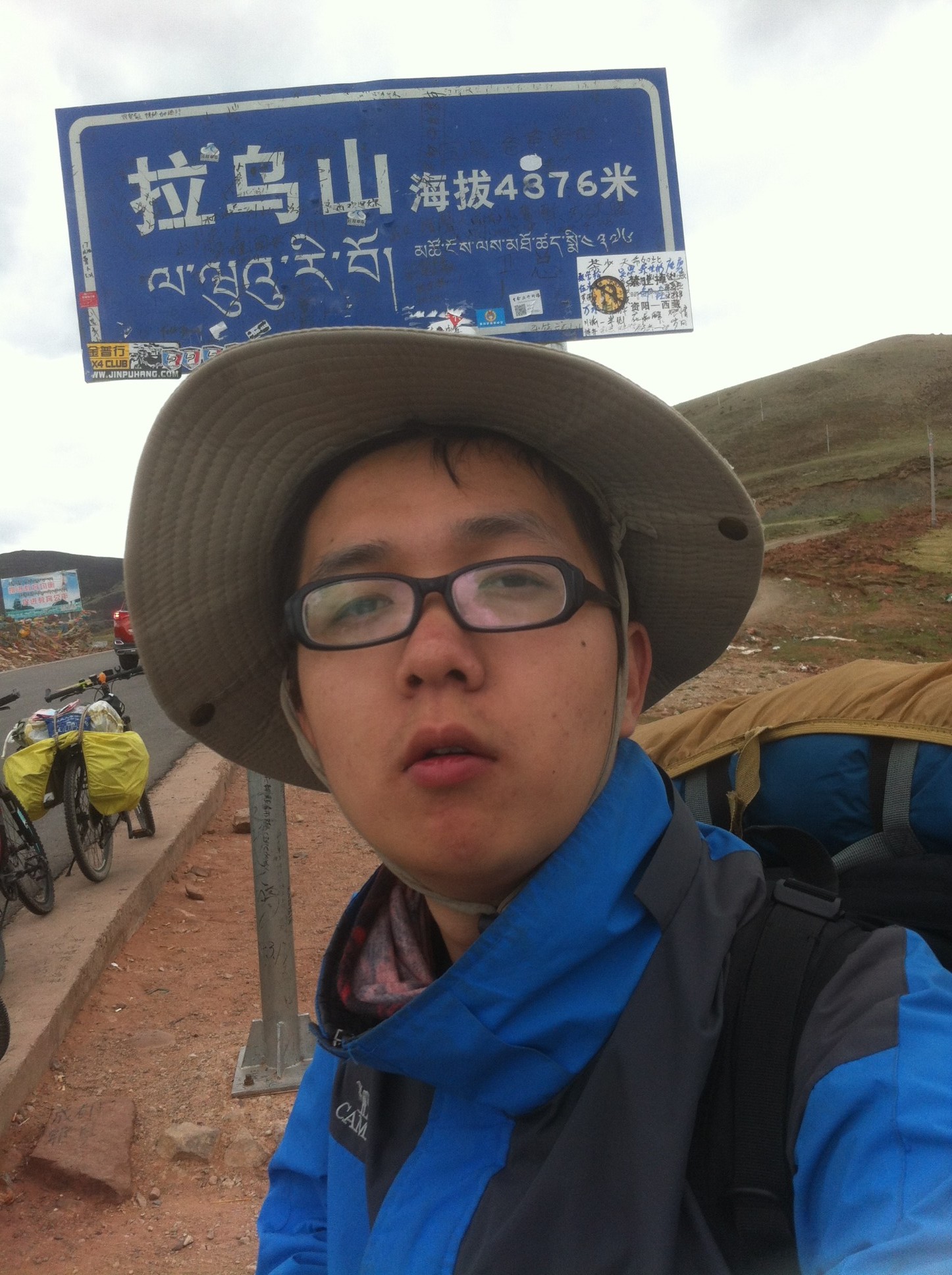 芒康后面的第一座山拉乌山,海拔4376米我在这里喝了一瓶红牛。这是怕了几个弯才到的一路上爬坡加顶风。我做好搭帐篷的准备了。旁边是骑行的。
