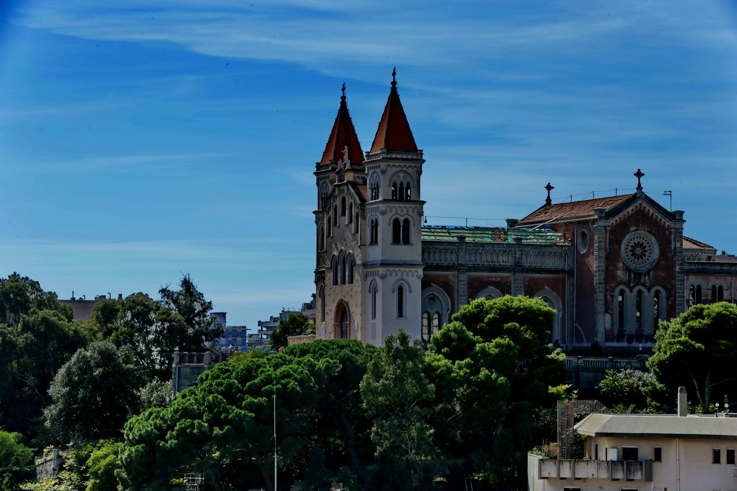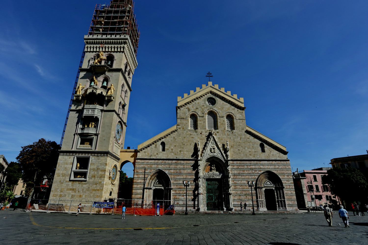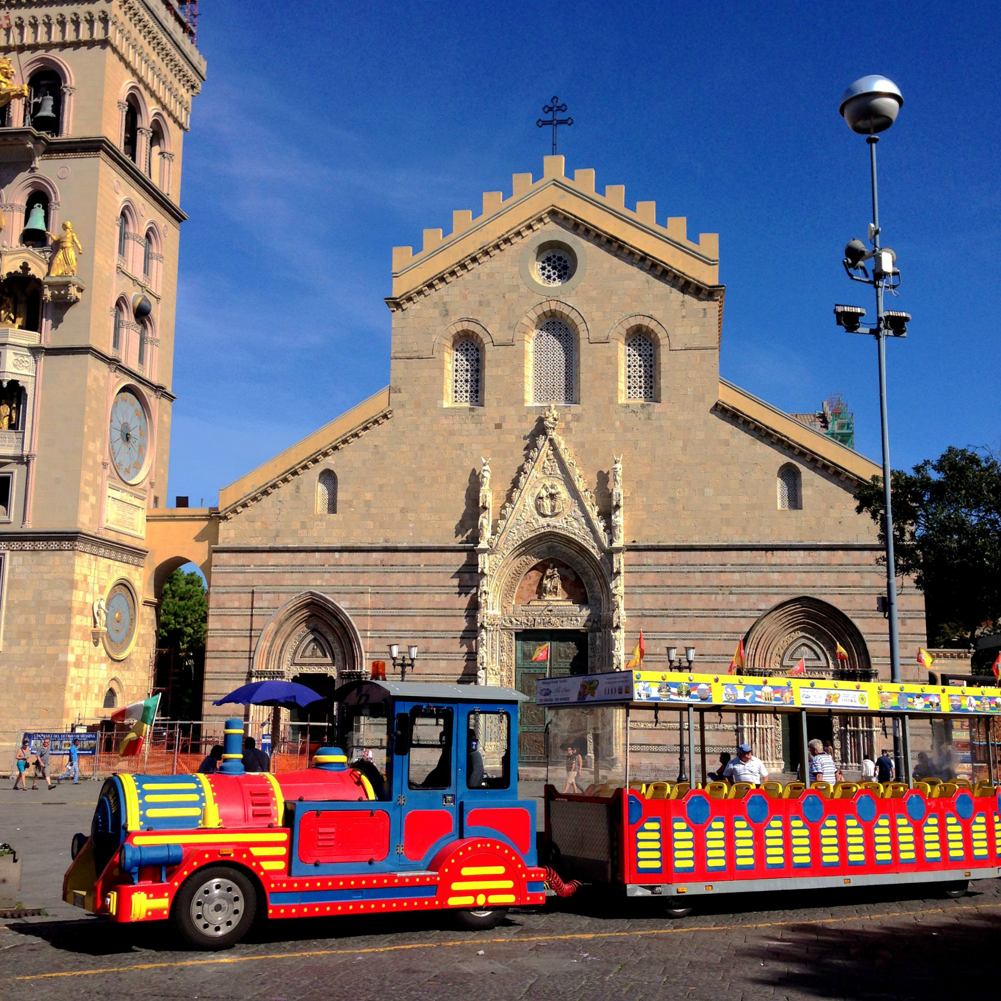 现在的墨西拿是一个美丽的城市,不过从旅游的角度讲,墨西拿小城景点并不多,半天就可以转完。卡塔拉尼广场的萨蒂西玛·安努兹亚塔教堂(Santissima Annunziata dei Catalani)是一座天主教堂,建于12世纪的诺曼底 时代,教堂边上是钟楼,整个建筑恢弘大气,肃穆庄严。历史上的大教堂已经毁于1908年的大地震,我们现在看到的是1919-1920年间重建的教堂,不过二战期间盟军轰炸引起教堂大火,1943年再次重建。