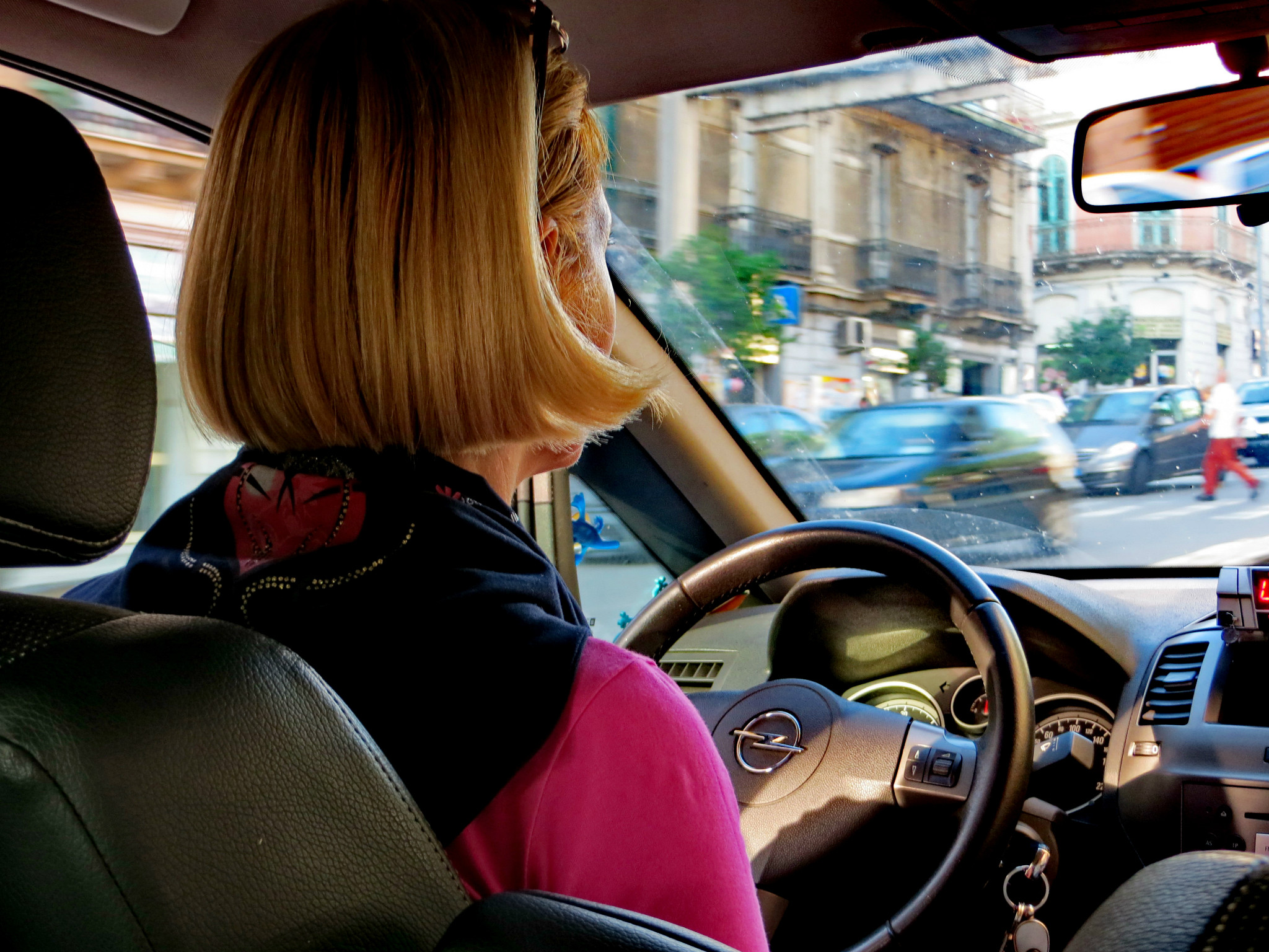 来墨西拿的游客其实“醉翁之意不在”墨西拿,而是距离墨西拿一个小时车程的陶米纳(Taomina)。我们照例没有购买船上的行程,而是和那对在马耳他 相识的加拿大 华裔夫妇包车前往,一人40欧,四个小时,而游轮上报价每人165美元。跟我们谈价的是一位意大利 中年男人,等谈好价格,领我们到一位金发碧眼的女士跟前,说这就是你们今天的司机。我们都很高兴有一位美女司机为我们服务,不过她的英语真是太糟糕了。