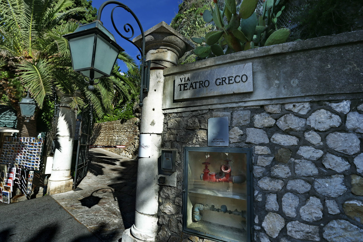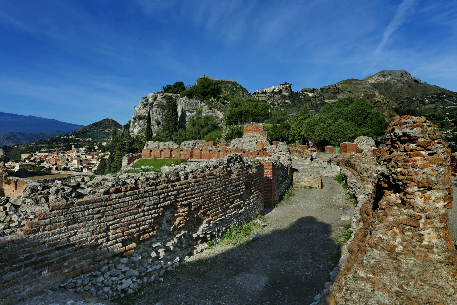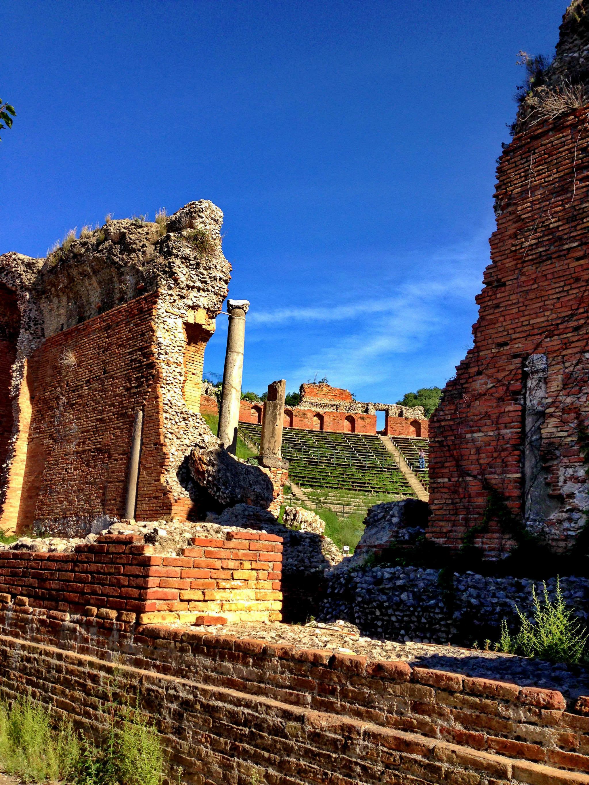 从Porta Messina进,沿Corso Umbreto I走到Piazza Vittorio Emanuele广场,沿左边的上坡路Via Teatro Greco,走到尽头便是歌剧院。首先看到的是残垣断壁。