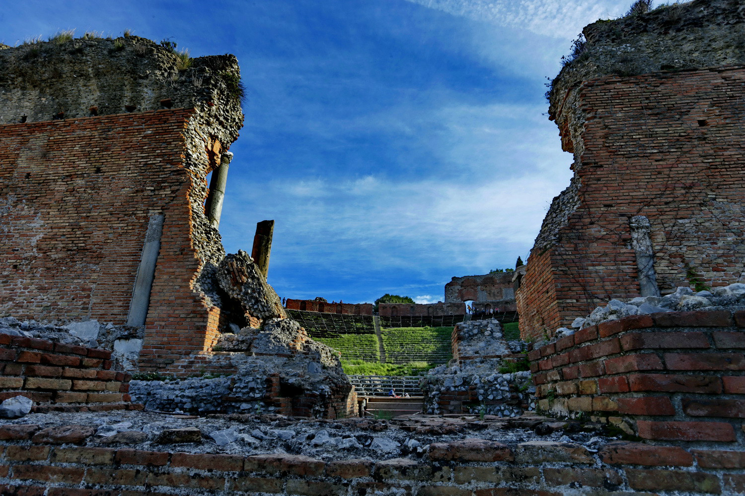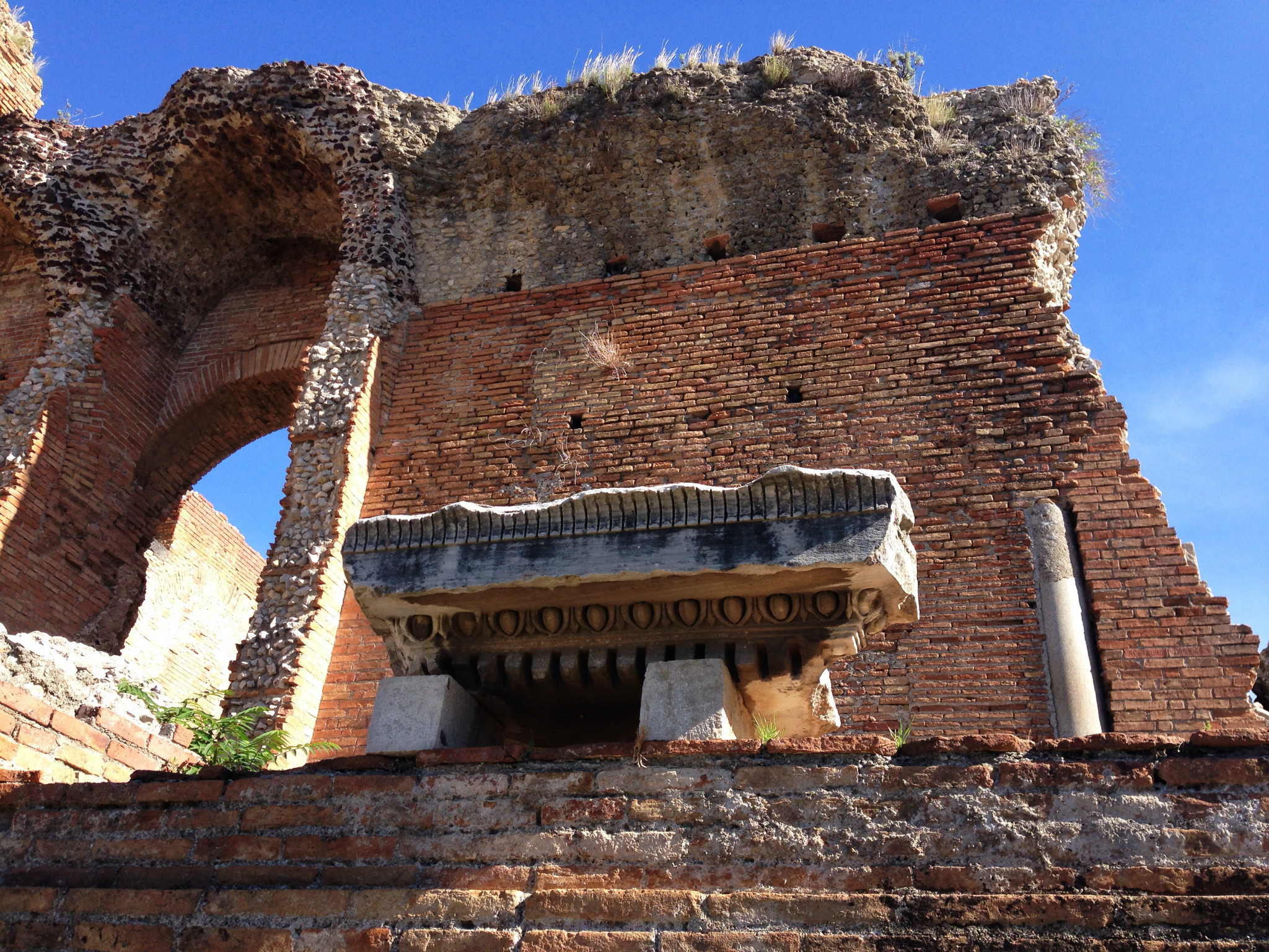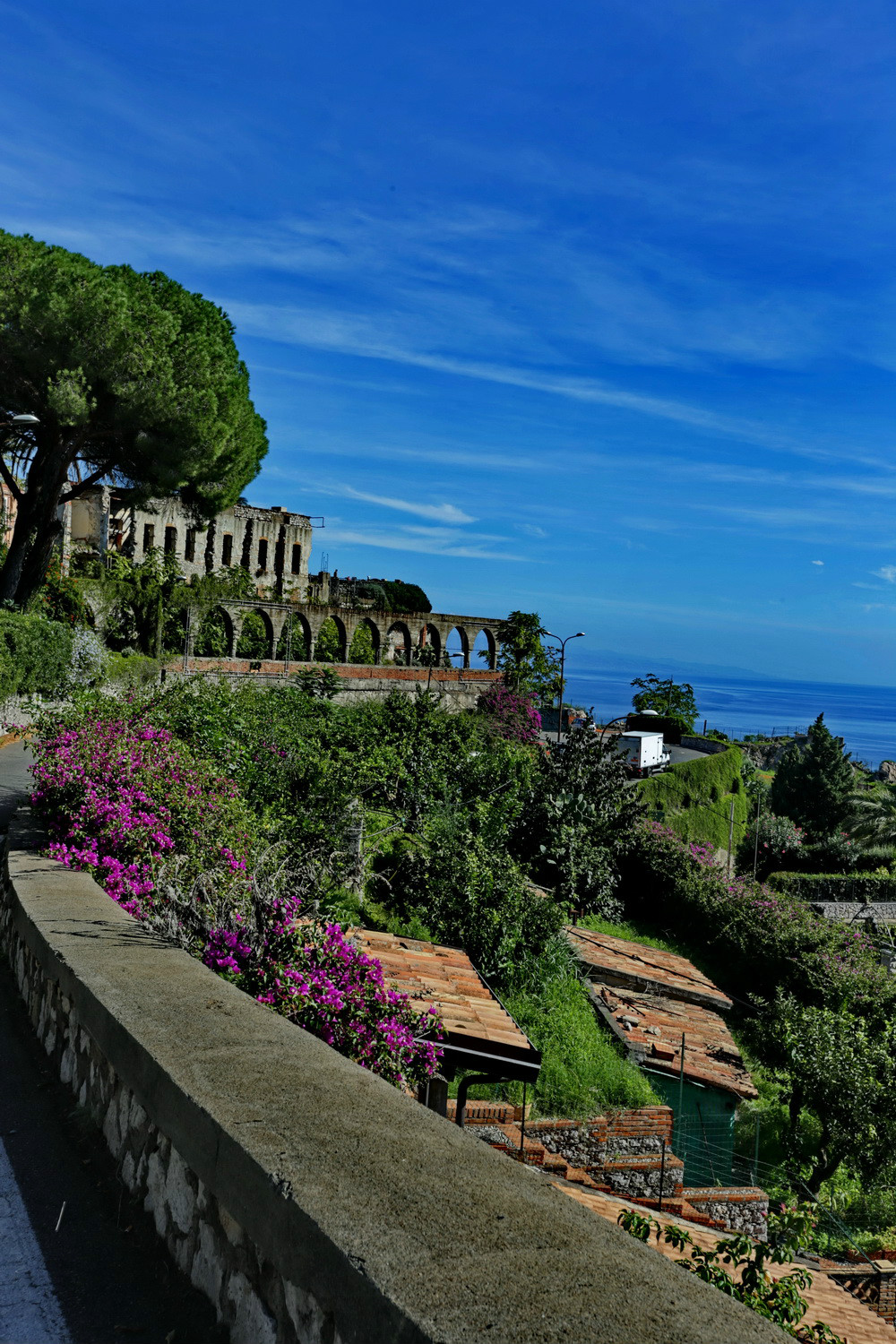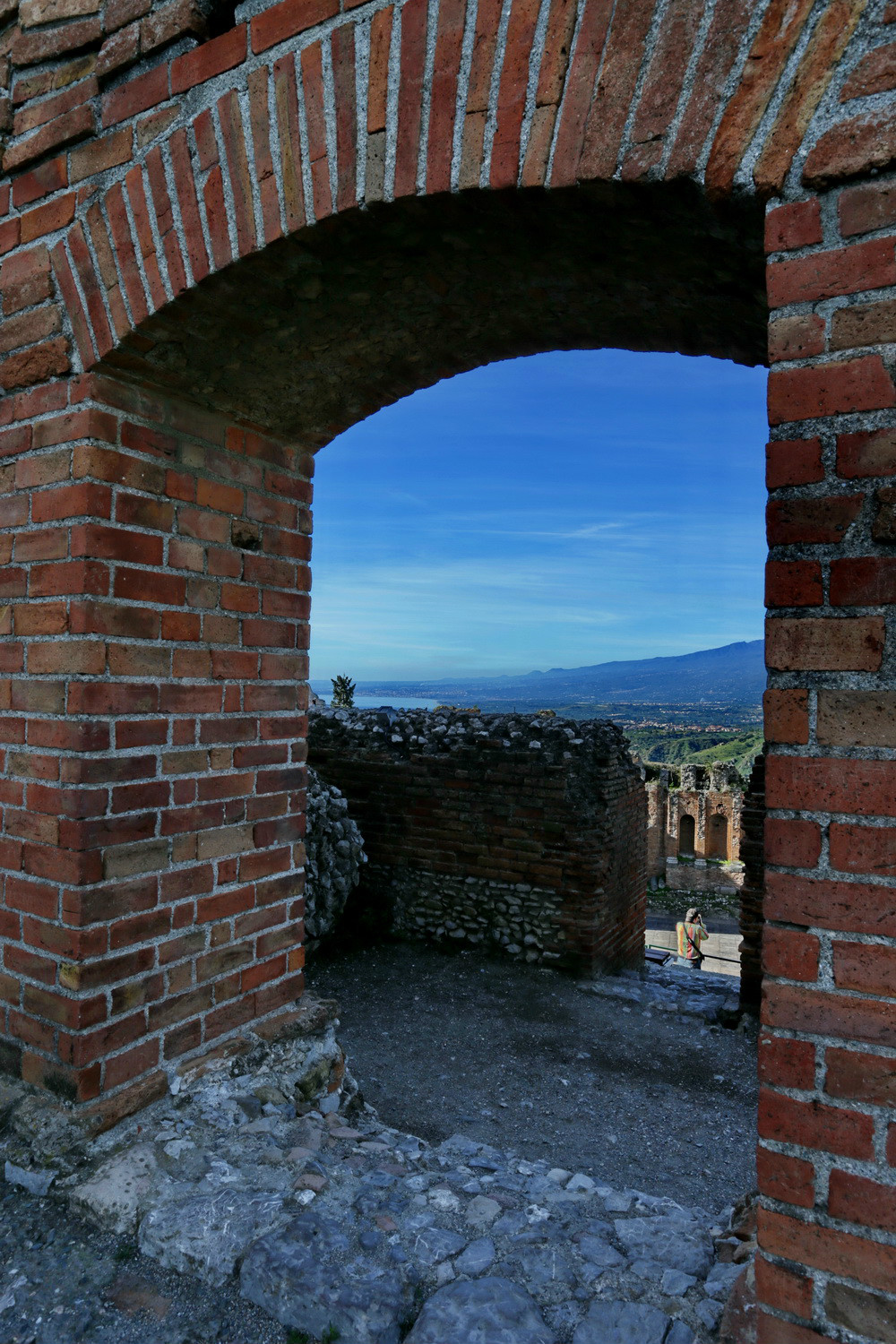 从Porta Messina进,沿Corso Umbreto I走到Piazza Vittorio Emanuele广场,沿左边的上坡路Via Teatro Greco,走到尽头便是歌剧院。首先看到的是残垣断壁。