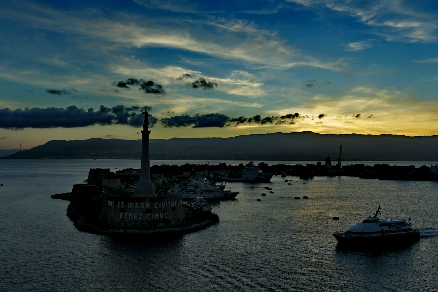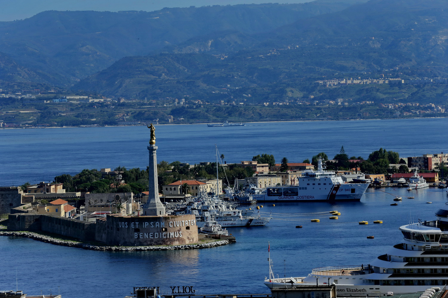 墨西拿则是靴子的脚踝关节部位。西西里 相隔墨西拿海峡遥望意大利 本土。我们的游轮从马耳他 出发,先到墨西拿,然后穿过狭窄的墨西拿海峡前往那不勒斯 、罗马 ,后折返,再次穿过墨西拿海峡,绕“靴子”一圈才能到达下威尼斯 、斯普利特 等地。穿过墨西拿海峡时,最狭窄处仅3.1公里,两岸景色清晰可见。意大利 数界政府都曾考虑修建墨西拿海峡跨海大桥,但一次次流产,支持者认为修建大桥可以创造无数就业机会,推动旅游业,而反对者认为建造这么一座跨海大桥将是个巨大的生态灾难。想想我国30公里以上的跨海大桥都有两座了,墨西拿海峡才3.1公里的跨海大桥真是有点小儿科了。