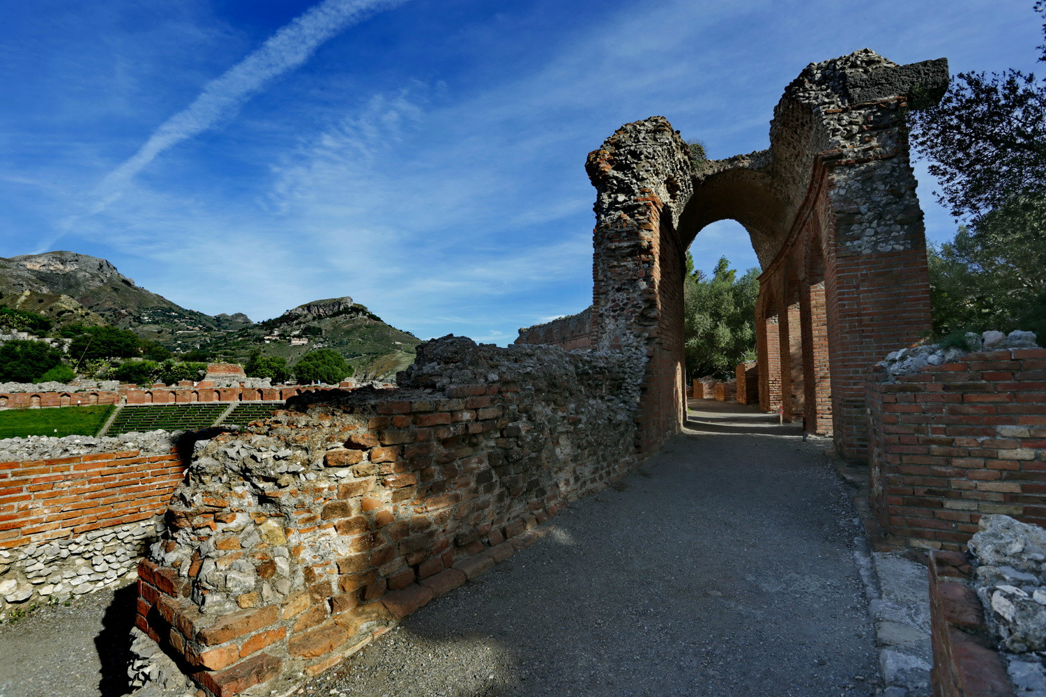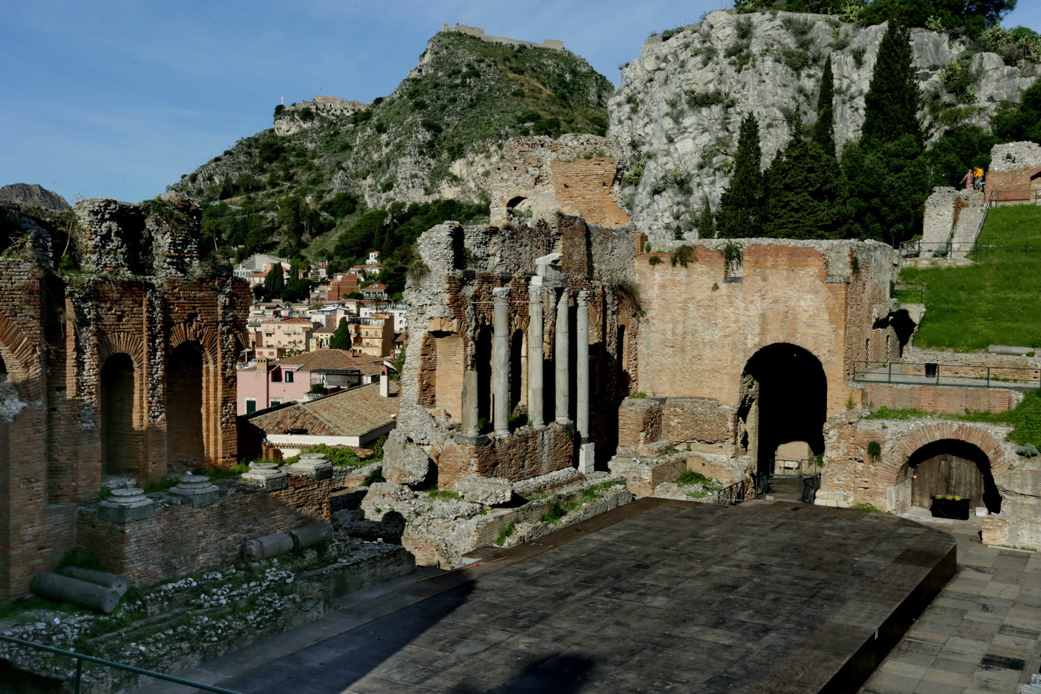在陶尔山的最高处是一座古希腊 歌剧院(Teatro Greco)遗址,建于公元前3世纪,最长的直径达209米,是西西里 第二大的剧院遗址。公元200年,罗马 入侵并占领了西西里 岛,这个古老的歌剧院成为当时古罗马 上流社会人物的聚集地,并在表演区域挖了水槽,用于上演罗马 人喜欢看的海战。