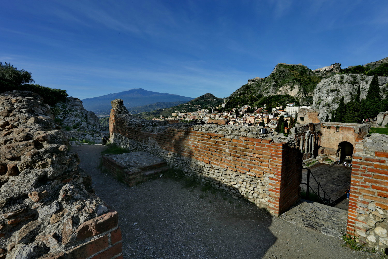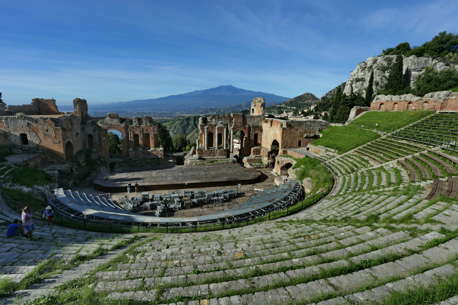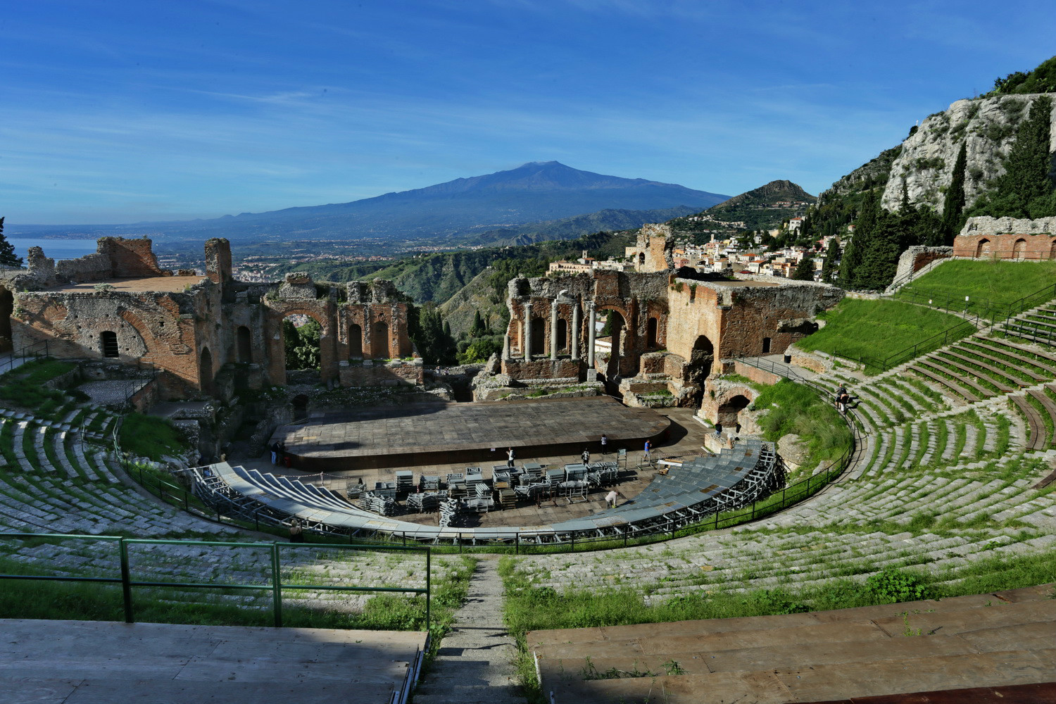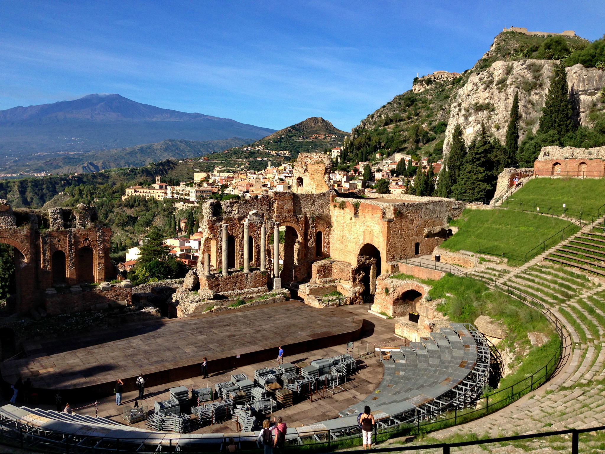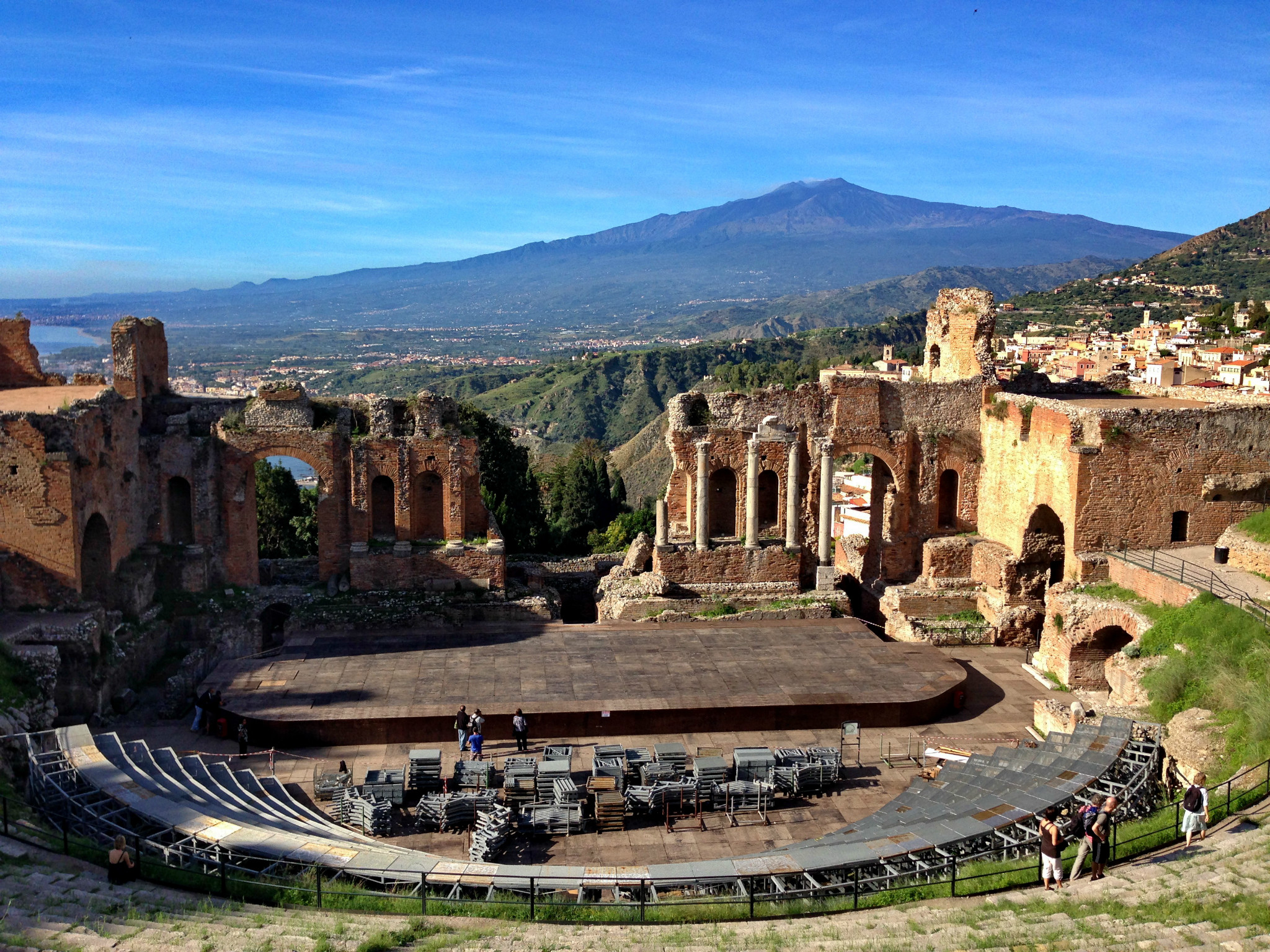 可以看出,目前这座古老的剧院还在为人民服务,经常上演歌剧、芭蕾和音乐会等。从剧院还可以看到远处的埃特纳 火山。
