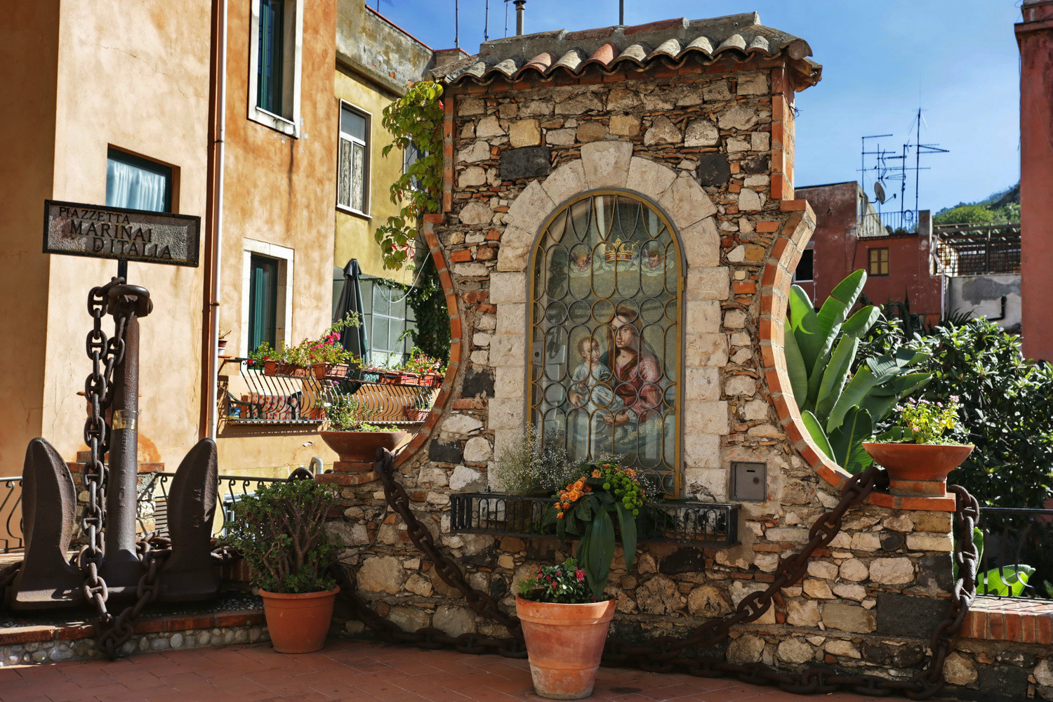 与港口相望的是重建于1931年的修道院(Sanctuary of Santa Maria del Carmelo),原来的毁于1908年的大地震。不收门票,但要凑够四五人才会有解说员带着进入修道院。