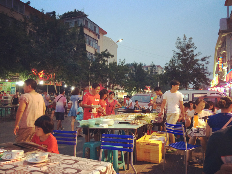刘庄中心的这条街叫“育花路”,真的很热闹啊,全是吃的喝的。刚到了,必然出来搓一顿,不是吗?