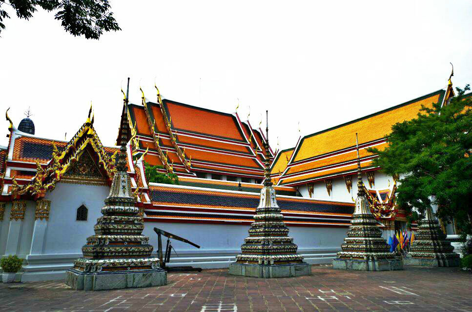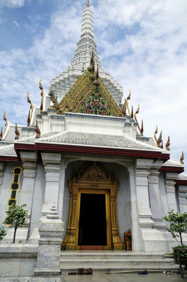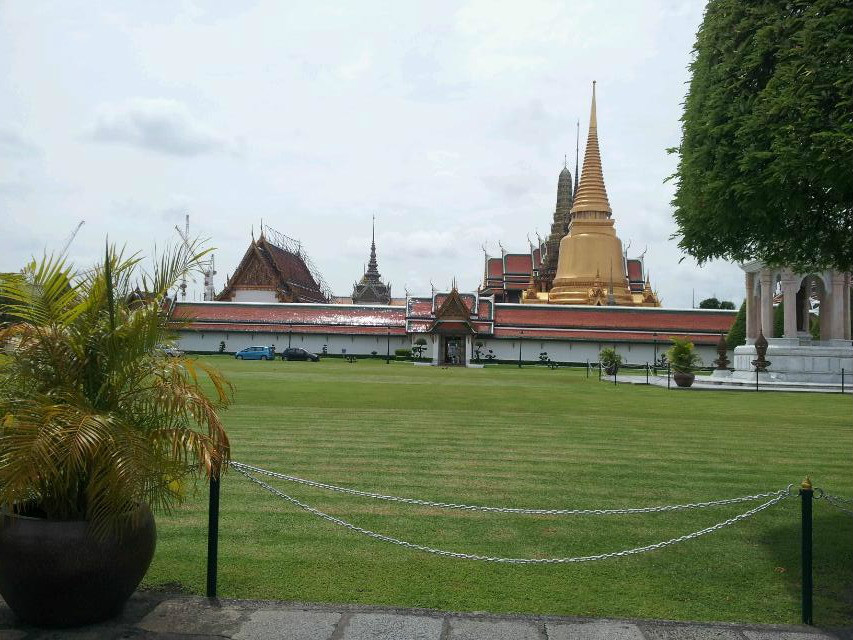 去大皇宫主殿的时候一个很端庄优雅的女士在拜佛,应该是很有地位的一个人,很多人在她身边张罗。我们也席地而坐,一群学生下课之后也来这里虔诚的拜拜佛,不能照相,我们就感受下这种氛围吧。