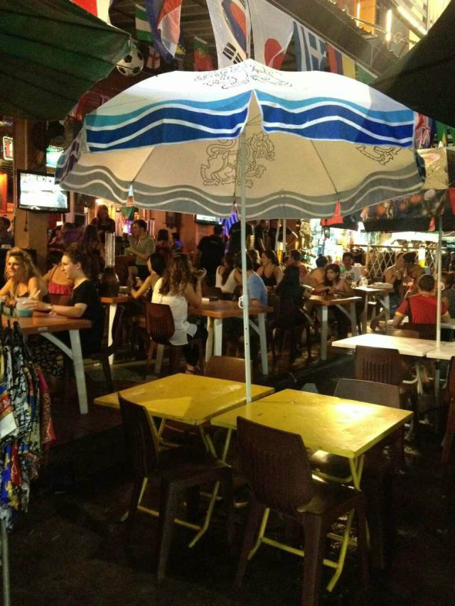晚上去考山路吃饭,正遇上世界杯,酒吧人声鼎沸,老外居多。喝了鲜榨的芒果汁,吃了香蕉饼,买了喝的回酒店休息了。