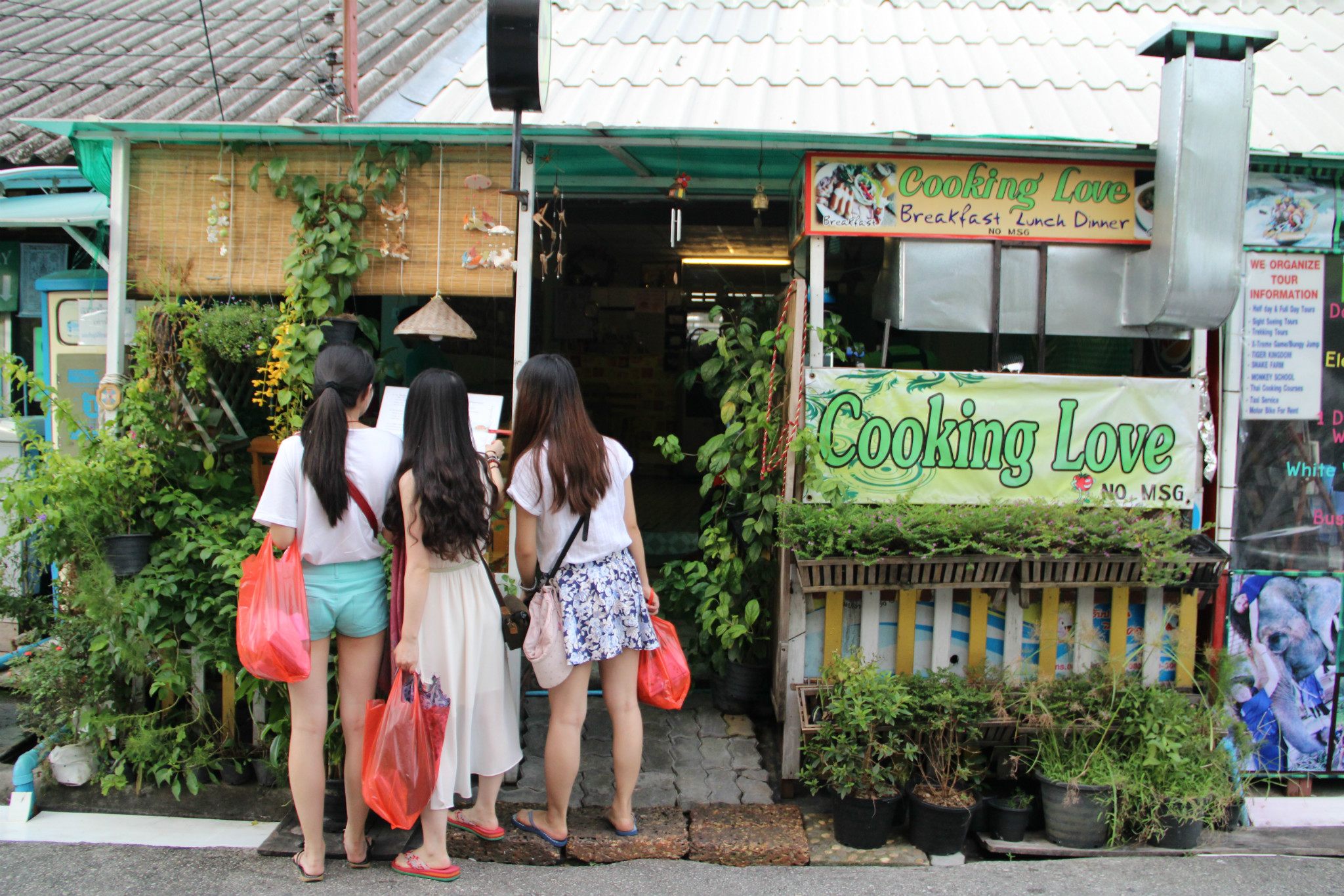 酒店到镇上一天只有三趟免费接送车,错过了就要自己打车去镇上,一个人50thb。