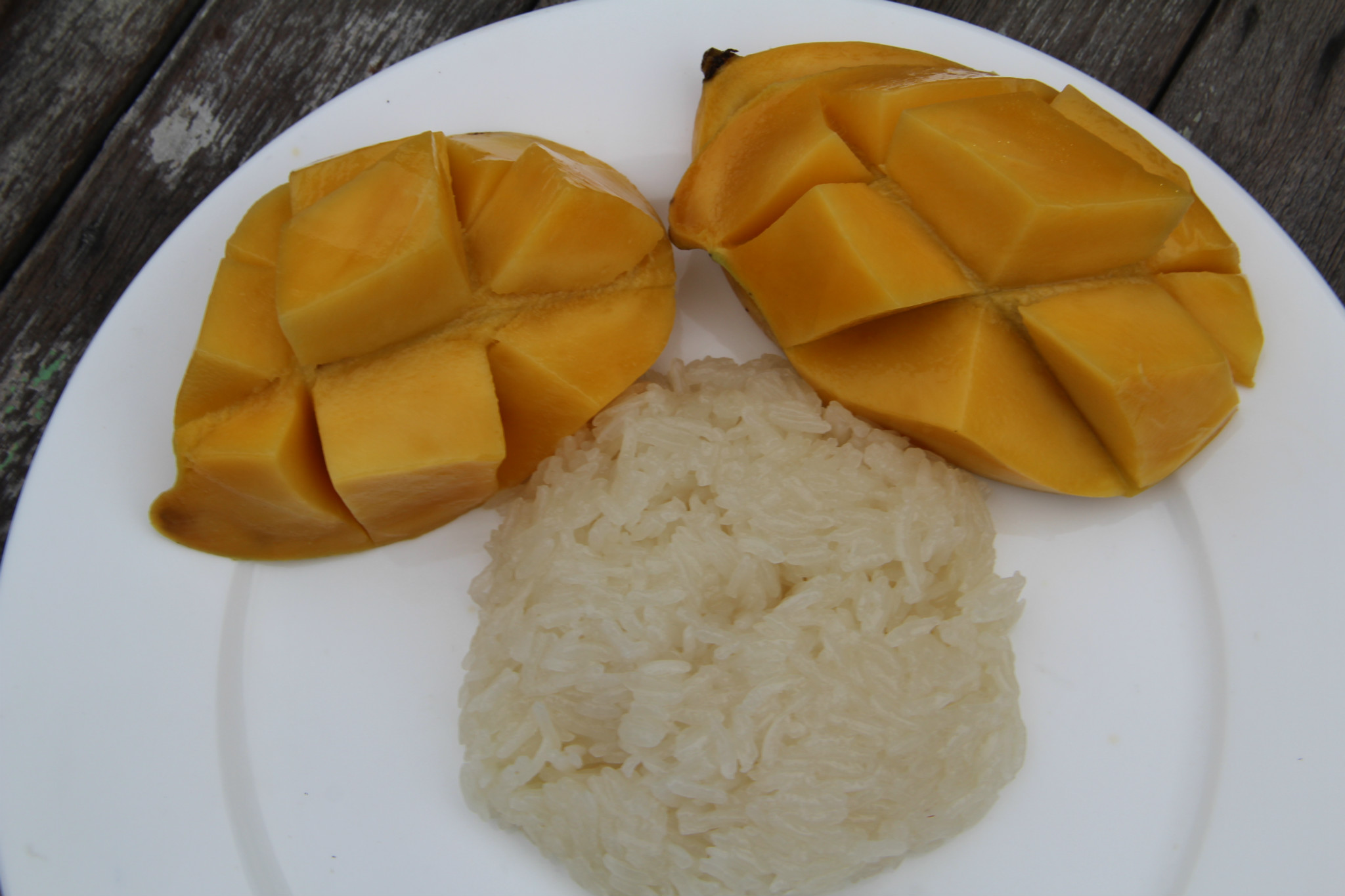 传说中的芒果糯米饭。100thb。芒果很甜,糯米饭超好吃。我觉得甜度刚好,小文觉得偏甜。米饭有浓浓的椰奶味。yummy~