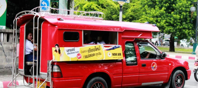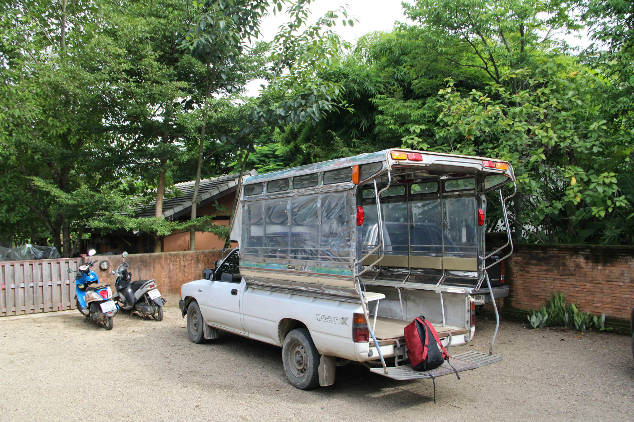 红色双条车是按照人数计算的,一人XXX钱。开价是50thb,后来讲价到30thb。双条车可以直接送到酒店门口。我们住在古城内。从火车站到酒店搭乘双条车大概20分钟。