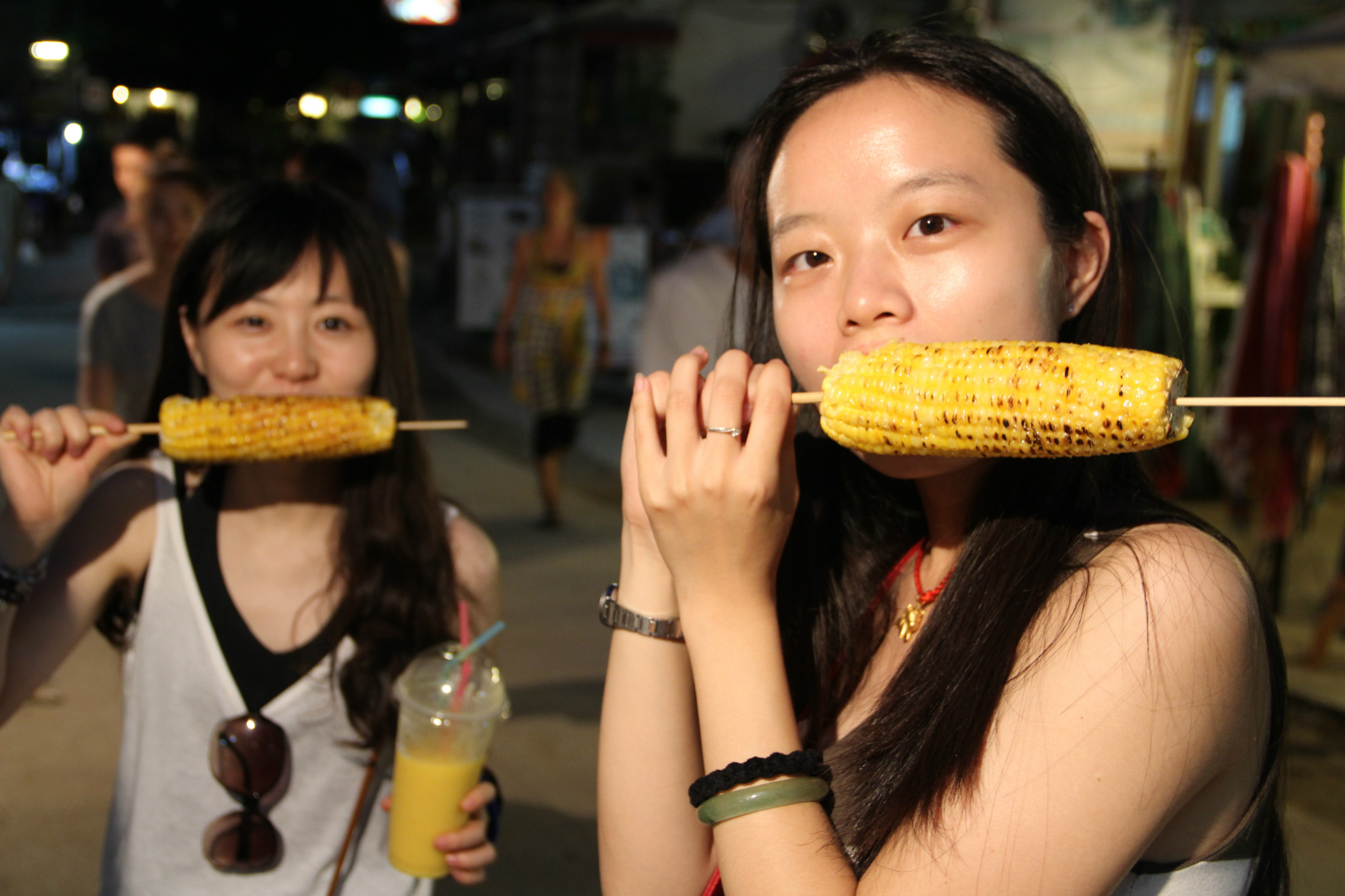 逛完夜市,在traffic light等待老板接我们回酒店~最后一趟回酒店的车是晚上九点,还好,我们赶上了末班车。回去的路上遇到了两个浙江 的美女,比我们早到PAI,租了摩托,逛了一整天。建议我们明天也租摩托车,省事很多~
