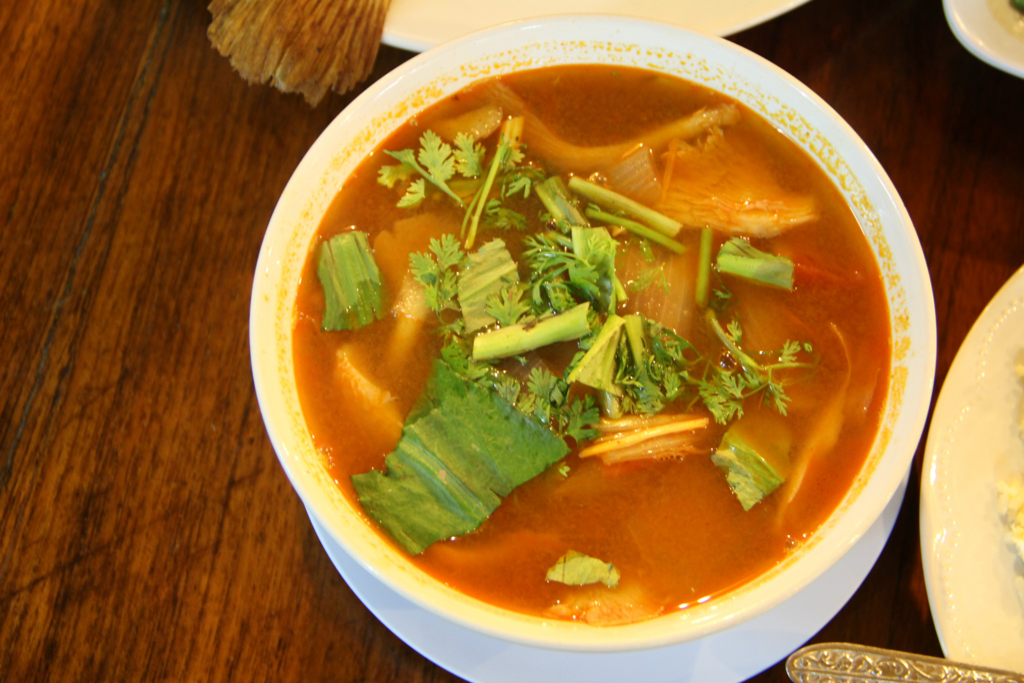 点了一份冬阴功汤,外加每人一份主食。我点的是面。三个女生一共吃了385thb。折合人民币每人大概26块。第一顿泰国 菜,味道超级好,甩了蕉叶&泰满冠几条街。关键是,价格便宜。
