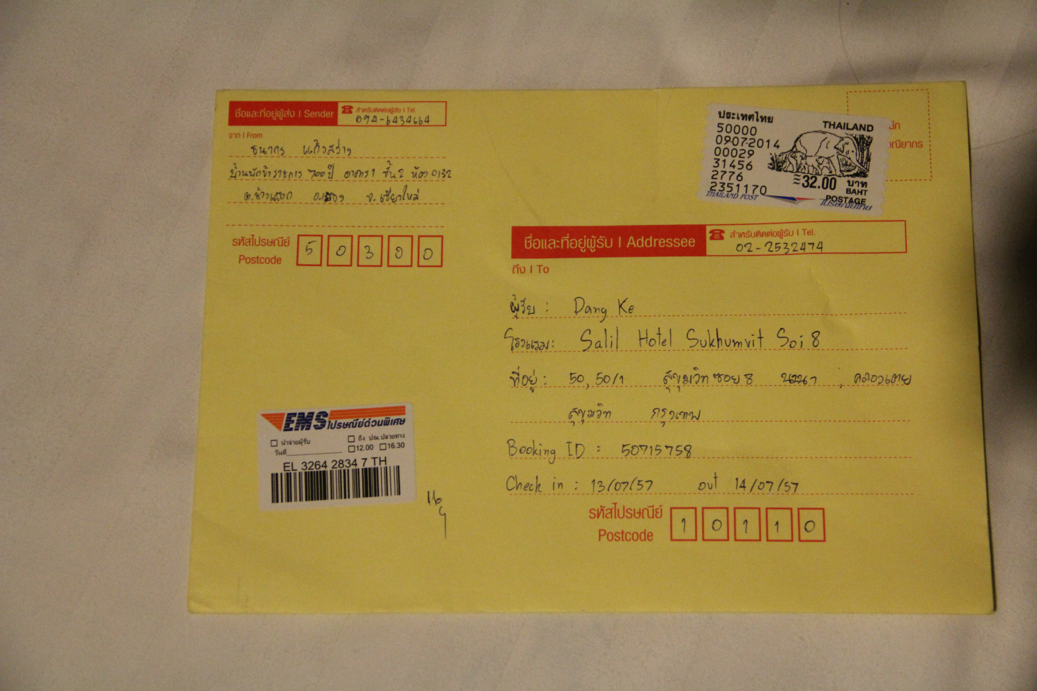 在淘宝上面买了火车票,掌柜将票快递到我在泰国 预定的酒店前台。办理入住时前台会将快递给你。