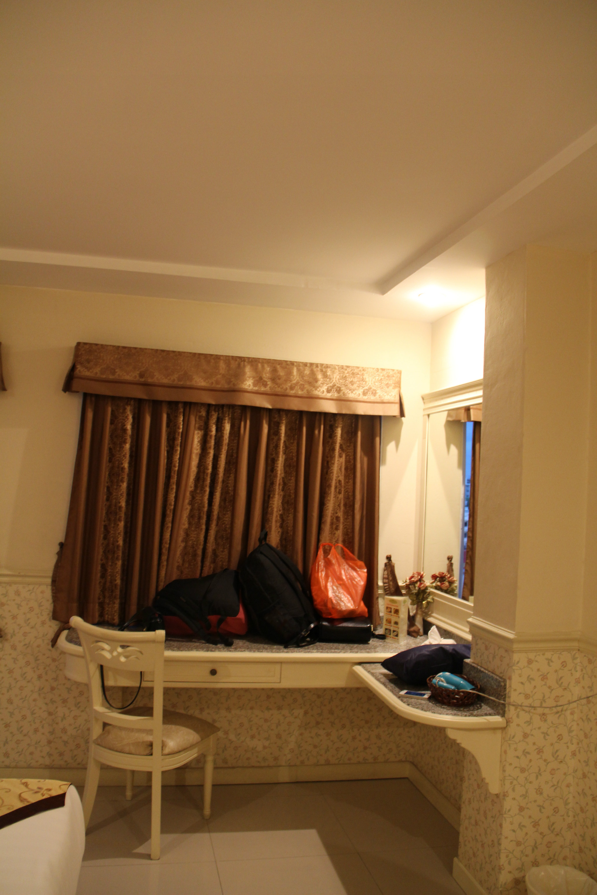 2、酒店房间价格不便宜。我定的房间是大床和双床尽量安排的那种,预定时备注了双床,到了前台,说双床已经没有了。但是大床房的床是king size。因为当晚是三个人住,听起来king size也够大了,我们三个也不胖。但是,到了房间,看到床以后就彻底绝望了。床不大,也就国内双人床的标准吧。