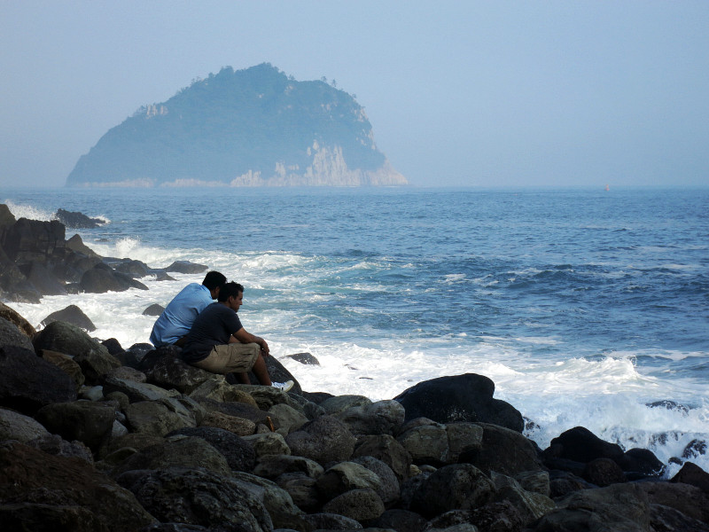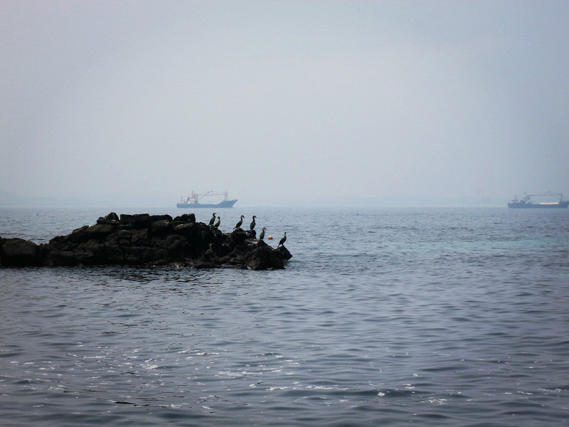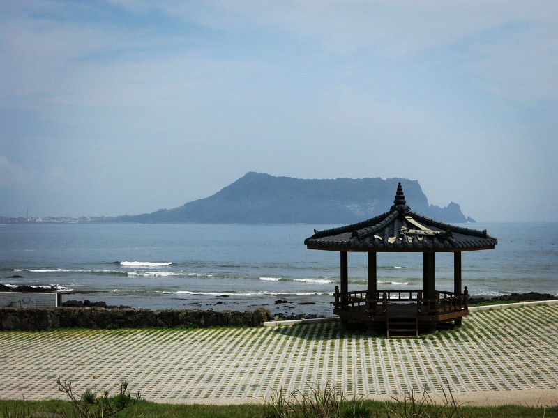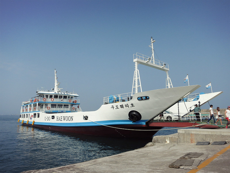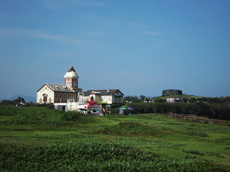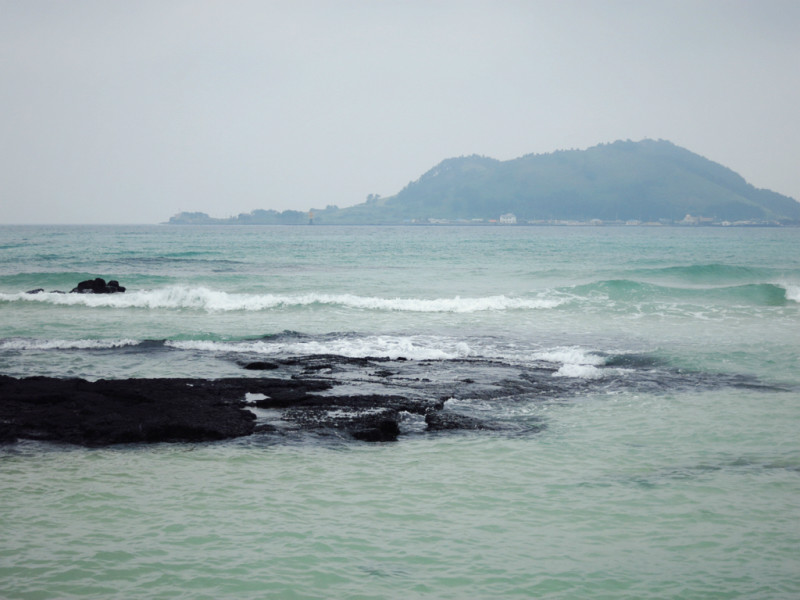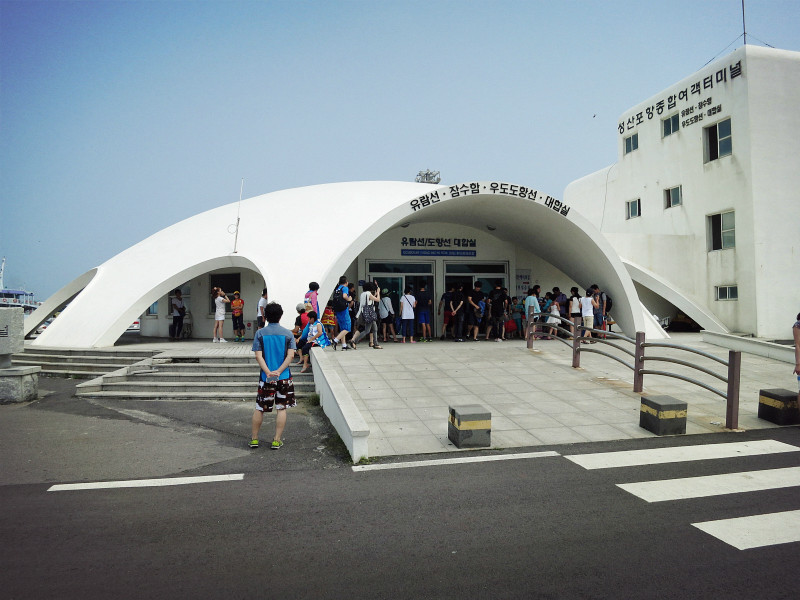 第三天的主要就是去牛岛。在Bus Terminal选择东线的车到城山港,终点站下。前两站是城山日出峰,在车上看了两眼,本来想回来的时候再去,不过因为天气太热,放弃了。港口去牛岛的人超多,车也超多,我们遇上了在济州岛 的第一次堵车,公交半天进不了站,本地人去牛岛的也不少。