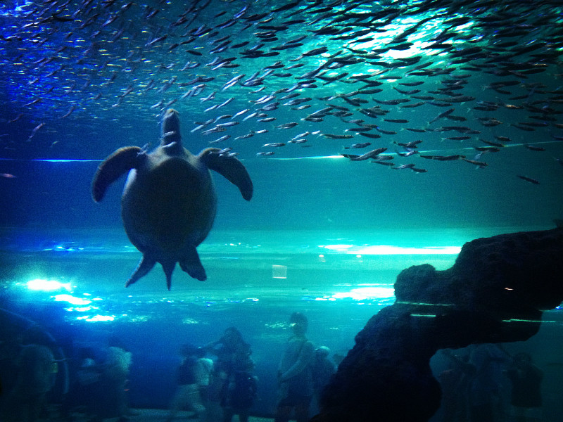 这是一个超大的水族箱,好像和前面的隧道是通着的,可以看到很多很多的鱼,据说这里有4米长的鲸鲨,但是貌似我们运气不佳,没有看到。
