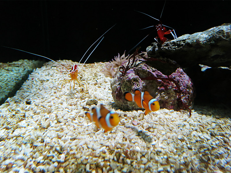 很小的小丑鱼和红色的虾