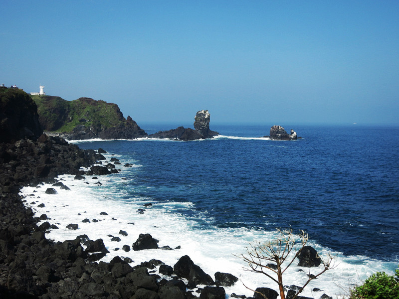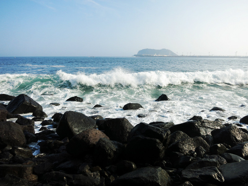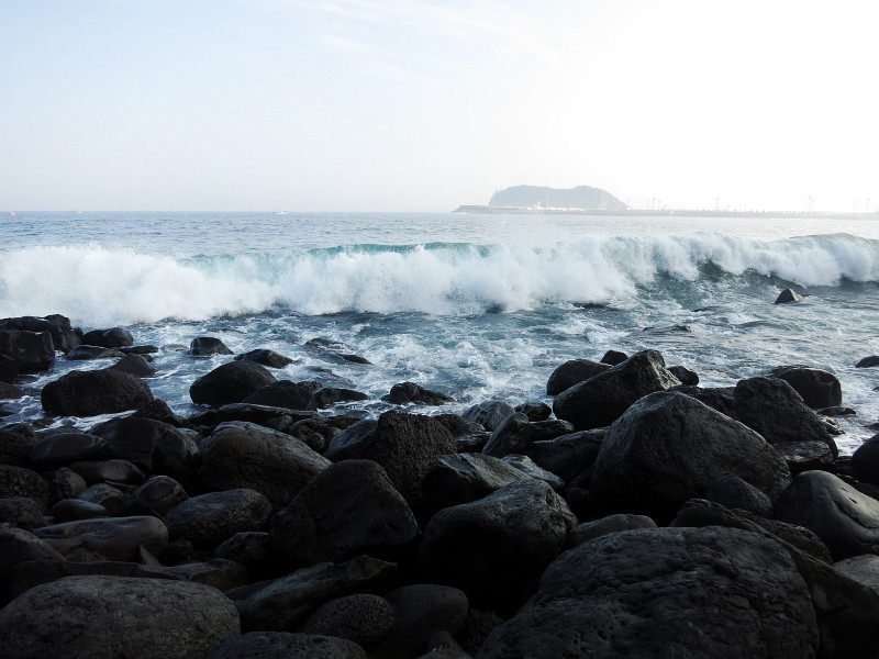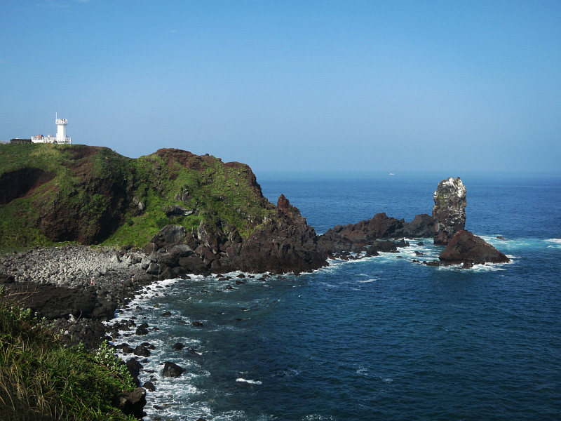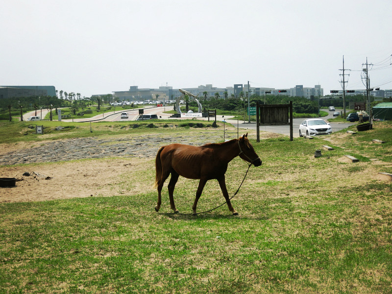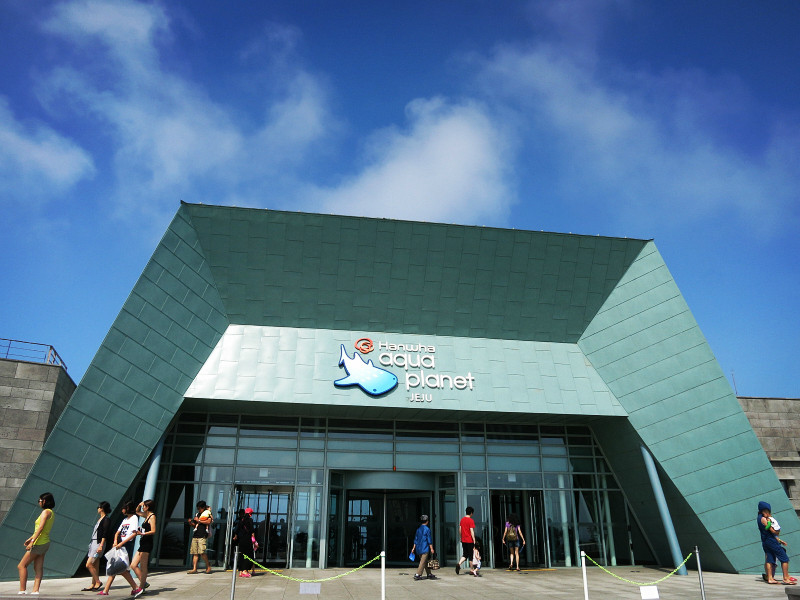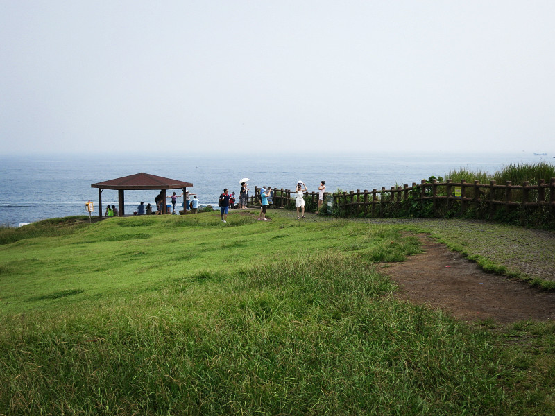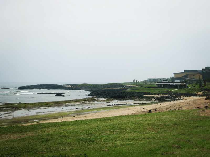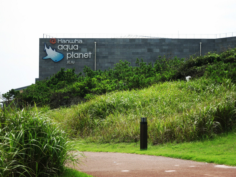 不过他们推荐的公交和导航的路线略有差异,下车后,需要走30分钟才到海洋星球附近。去涉地可支还要再走上30分钟。很多人将城山日出峰和涉地可支和在一起参观,毕竟两个地方看起来不远。但是貌似没有直达的公交,需要打车。城山日出峰我们在去牛岛的时候已经大致看了一眼,这回在海岸边也远远的观望了一下,就可以了。我们此行的主要目的地是海洋星球,因为户外实在是太晒了……
