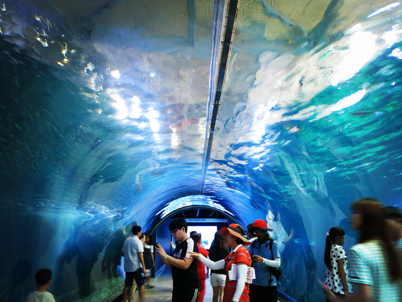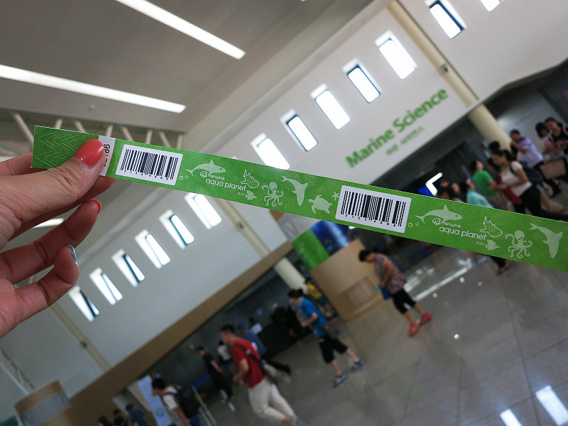 这里的门票超贵,成人要3万9千韩元,折合人民币就是200多块钱。不过这个亚洲 最大的海洋馆也是值得一看的。门票是一个彩色的手带,可以戴在手上。